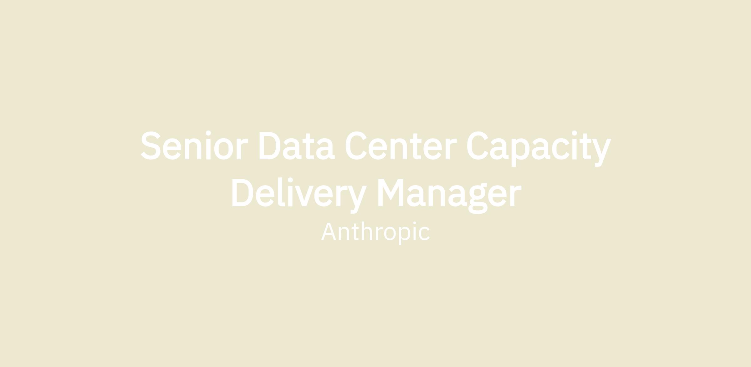 Senior Data Center Capacity Delivery Manager