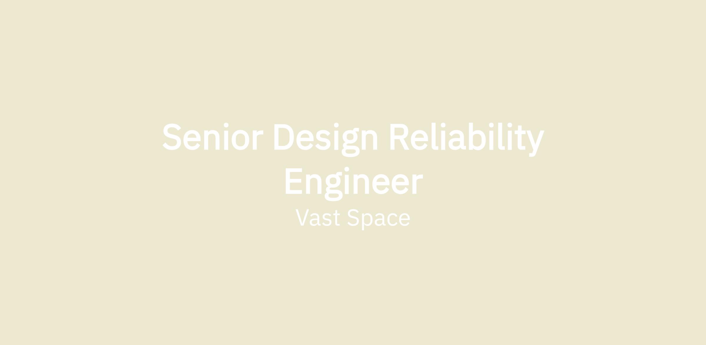 Vast is looking for a Senior Design Reliability Engineer, reporting to the Senior Manager, Design Reliability, to support the development of the systems that will be required for the design and build of artificial-gravity human-rated space stations.