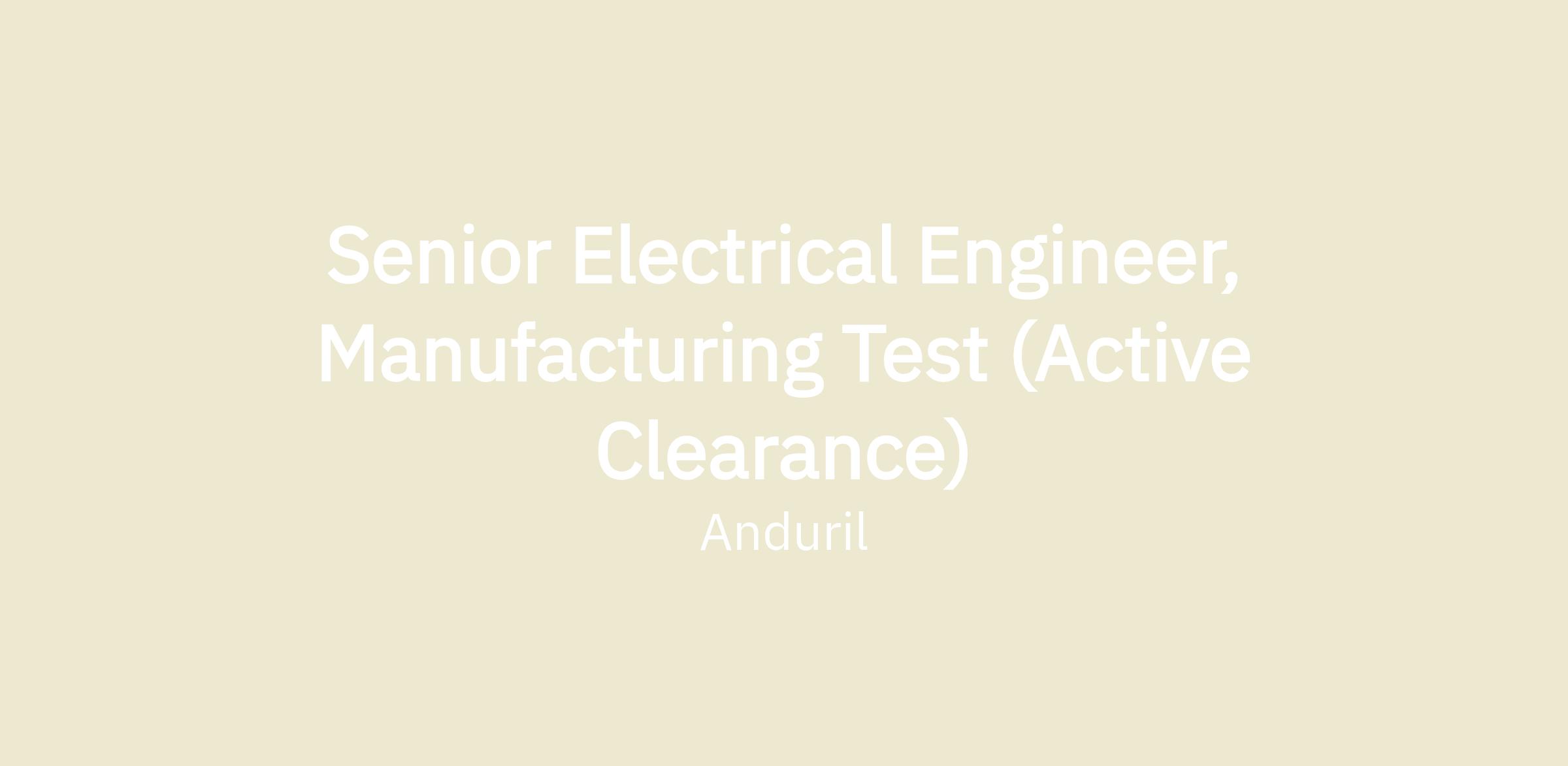 Senior Electrical Engineer, Manufacturing Test (Active Clearance)