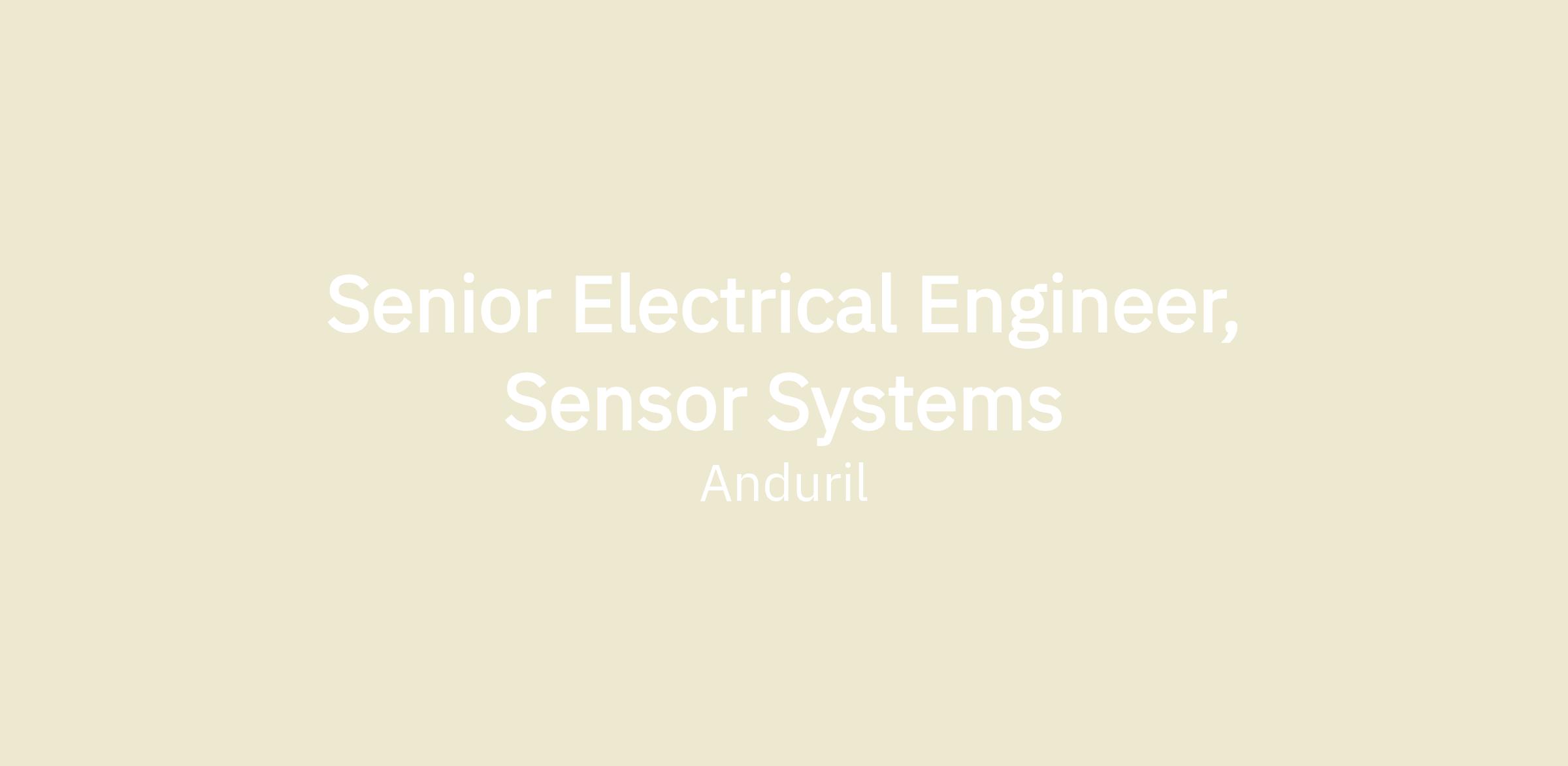 Senior Electrical Engineer, Sensor Systems