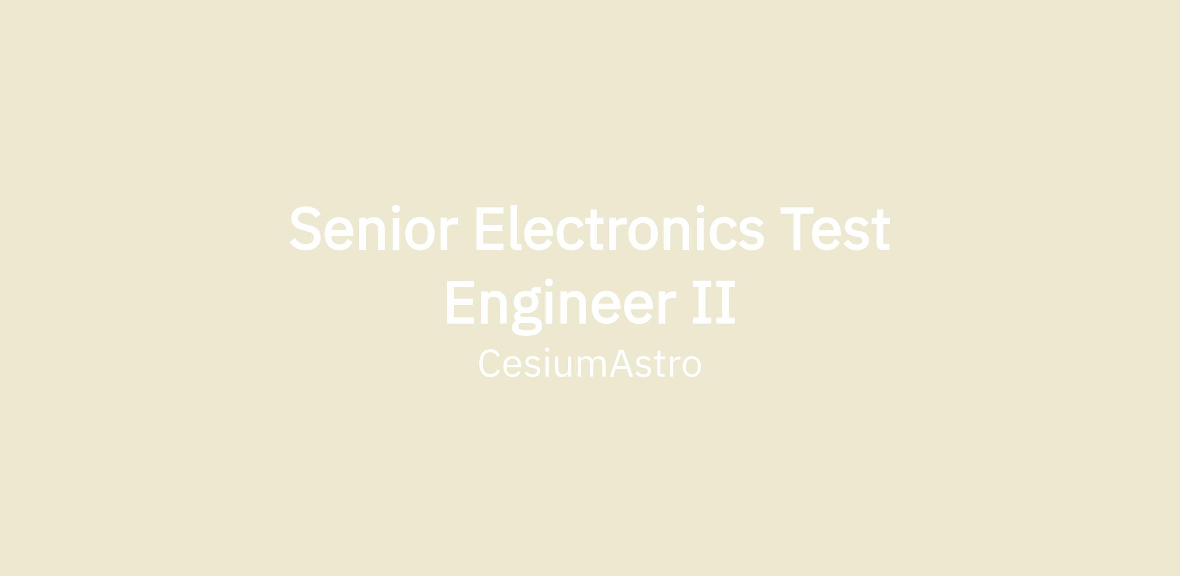 Senior Electronics Test Engineer II engineers are core members of the Cesium technical team. As a member of our Test Engineering, you are responsible for the design, analysis, and implementation of engineering test plans and procedures for board-level electronics products, including power, digital, and RF electronics. The ideal candidate possesses a strong combination of hardware and software knowledge with proficiencies in measurement techniques, test equipment, test architectures, automation, and integrated system testing. The successful candidate will work closely with multi-disciplinary teams to address company-wide test needs.