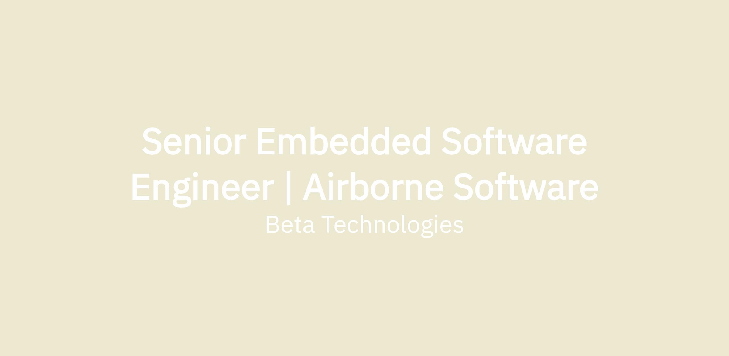 The Senior Embedded Software Engineer for Airborne Software will apply their deep knowledge of RTCA DO-178C, best practices for real-time safety-critical embedded software development, technical leadership experience, and embedded C mastery to directly contribute to and lead a small team to specify, architect, design, implement and integrate the embedded software for BETA’s airborne systems. The ideal candidate will have extensive knowledge of embedded software development, from bare-metal board bring-up and microcontroller timing and execution characteristics to comprehensive software specification and design methods and techniques. The senior embedded software engineer is responsible for developing robust and reliable software to achieve the highest level of safety-criticality in the industry.