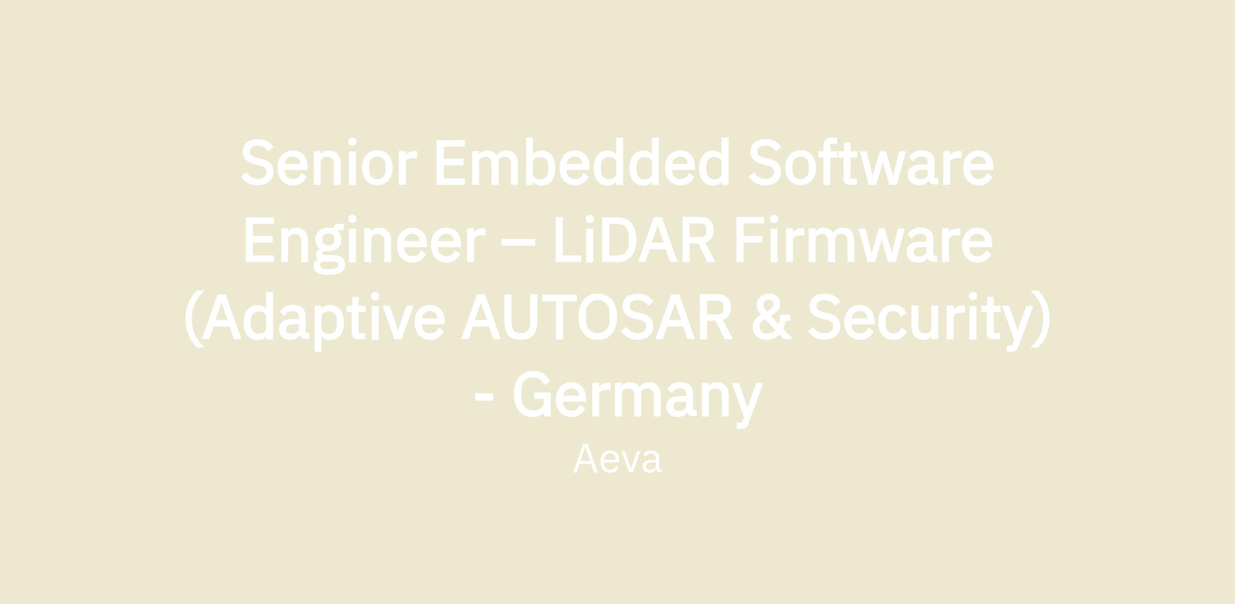 Senior Embedded Software Engineer – LiDAR Firmware (Adaptive AUTOSAR & Security) - Germany