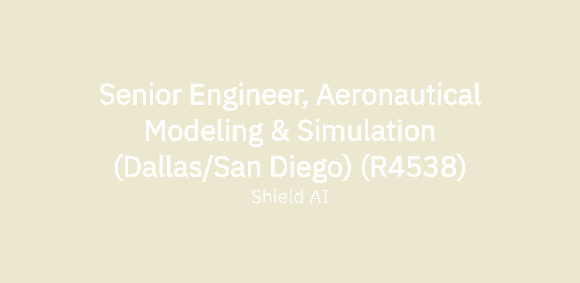 Senior Engineer, Aeronautical Modeling & Simulation (Dallas/San Diego) (R4538)