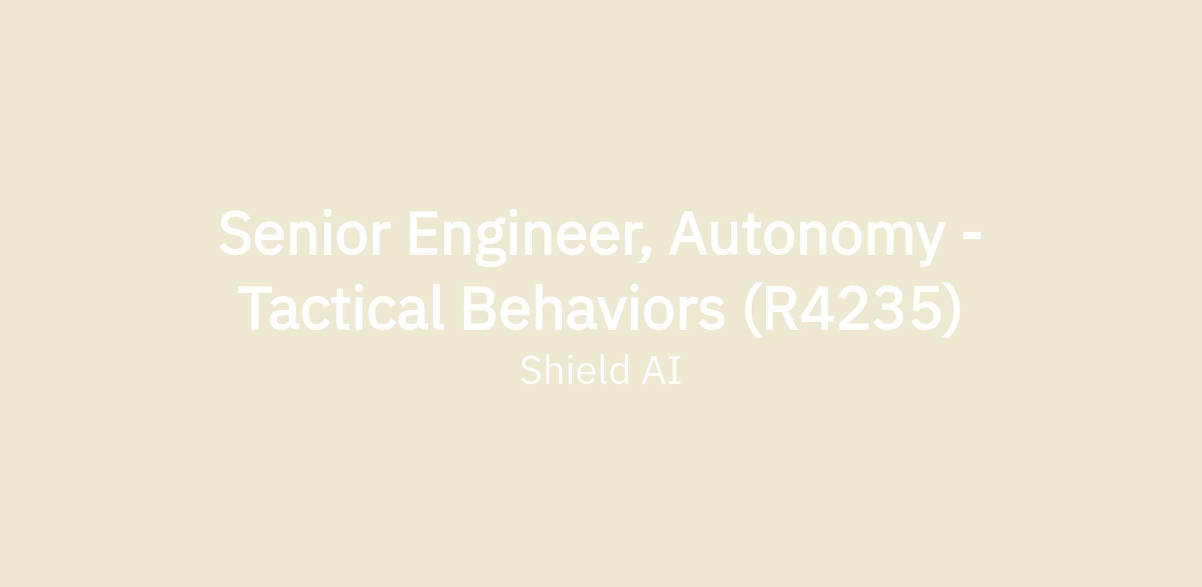 Senior Engineer, Autonomy - Tactical Behaviors (R4235)
