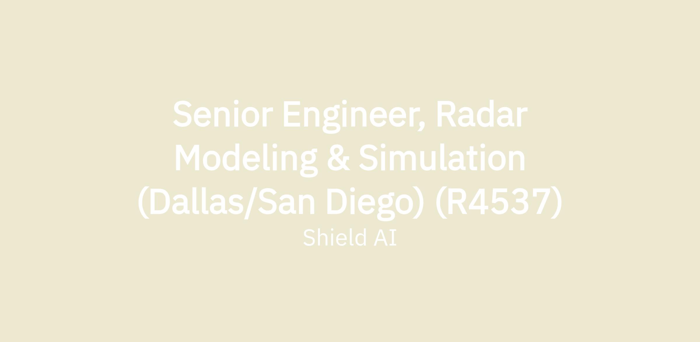Senior Engineer, Radar Modeling & Simulation (Dallas/San Diego) (R4537)