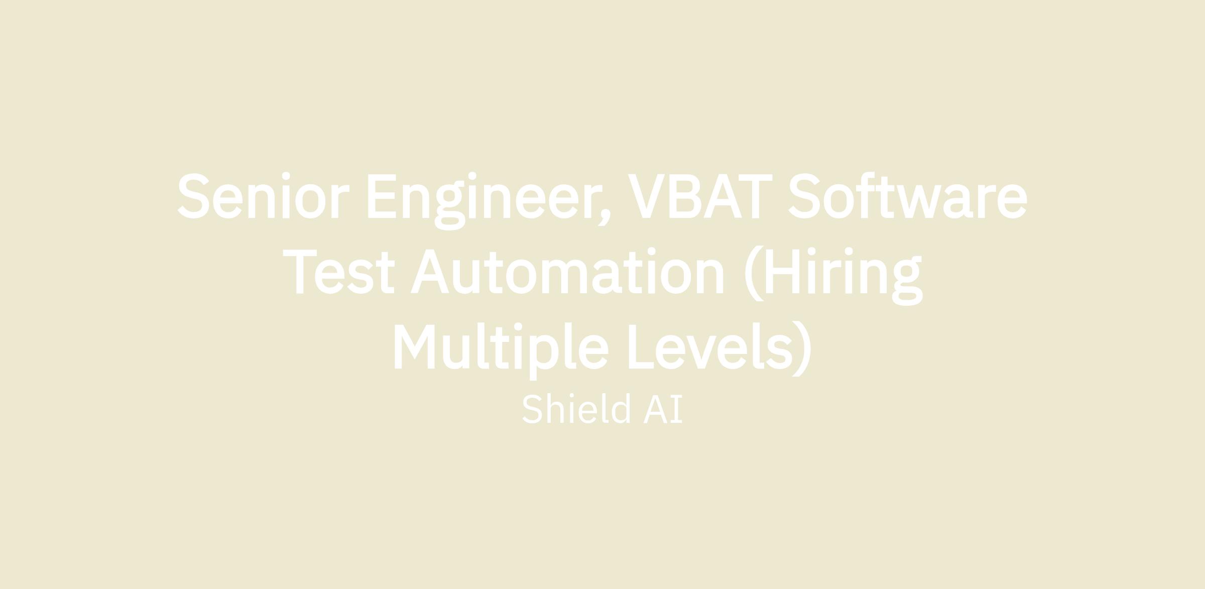 Senior Engineer, VBAT Software Test Automation (Hiring Multiple Levels)