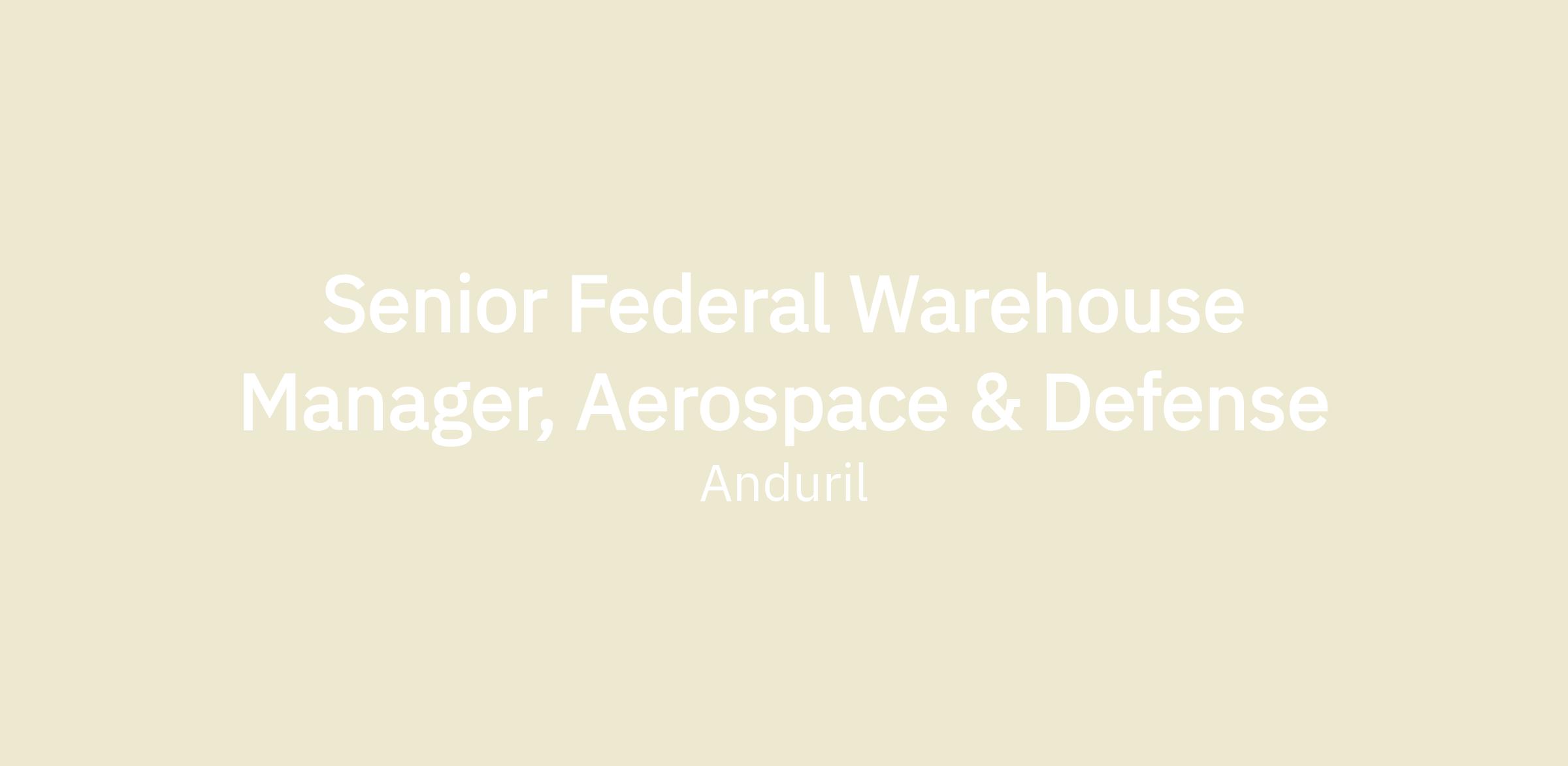 - Hiring & training talent who can manage material flow per Anduril Federal guidelines.