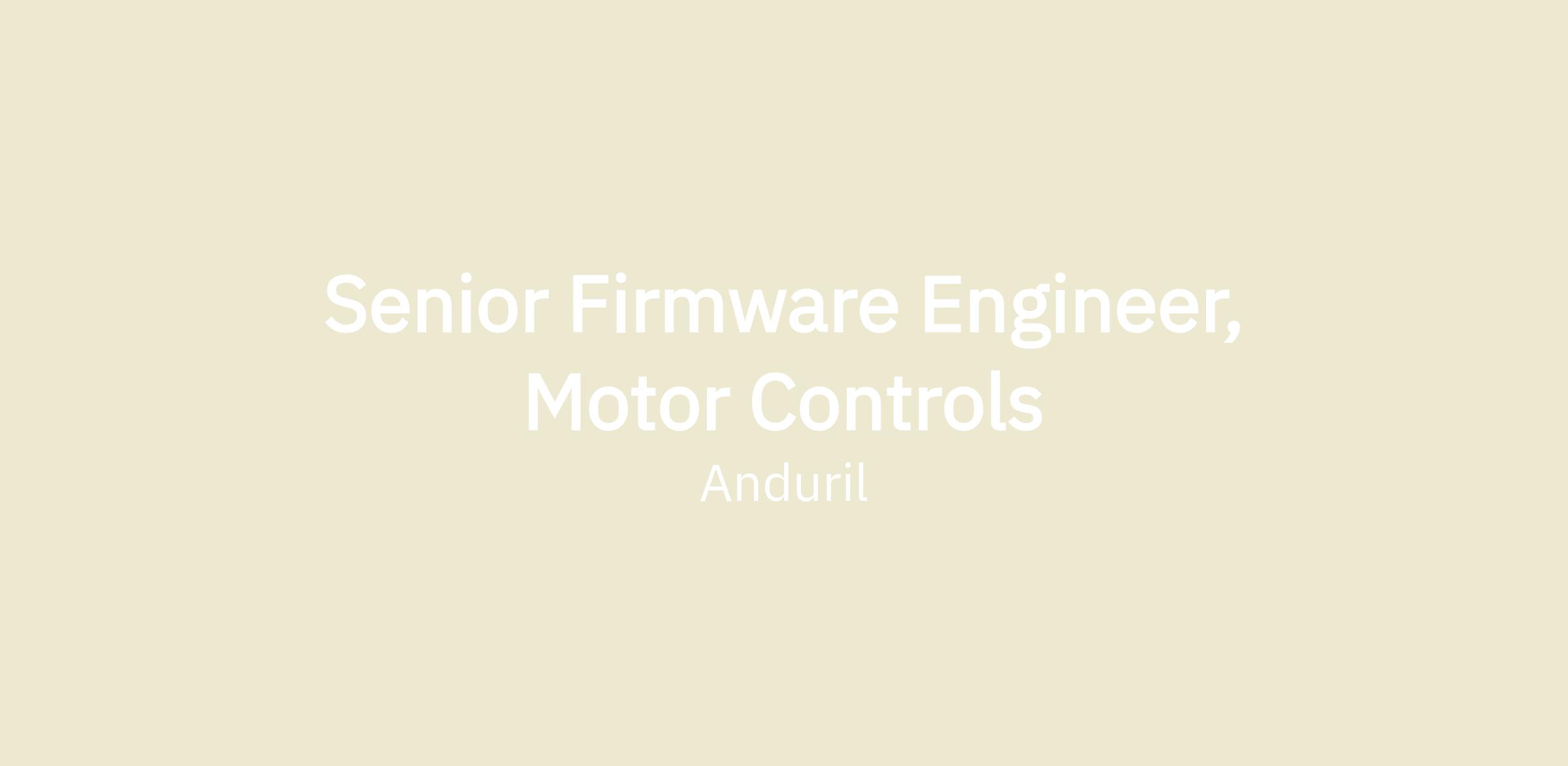 We are looking for Firmware Engineers to join the team! You will develop motor control and actuator firmware that spans across Anduril’s fleet of autonomous vehicles on land, air, and sea. The ideal person for this role will have a blend of experience with embedded C and classical control theory (motor control) looking to leverage their passion for firmware and low-level development here at Anduril.