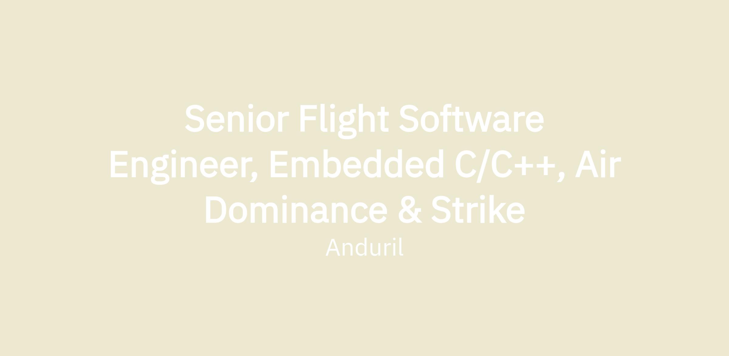 As a Senior Flight Software Engineer, you will be responsible for developing the microcontroller embedded software that powers Anduril’s aircraft while working alongside a team of engineers with a diverse set of backgrounds and skills. Anduril has a collaborative culture with plenty of opportunities for ownership. As an early member of the team, your decisions today will have a large impact on the company now and into the future, as well as on our customers!