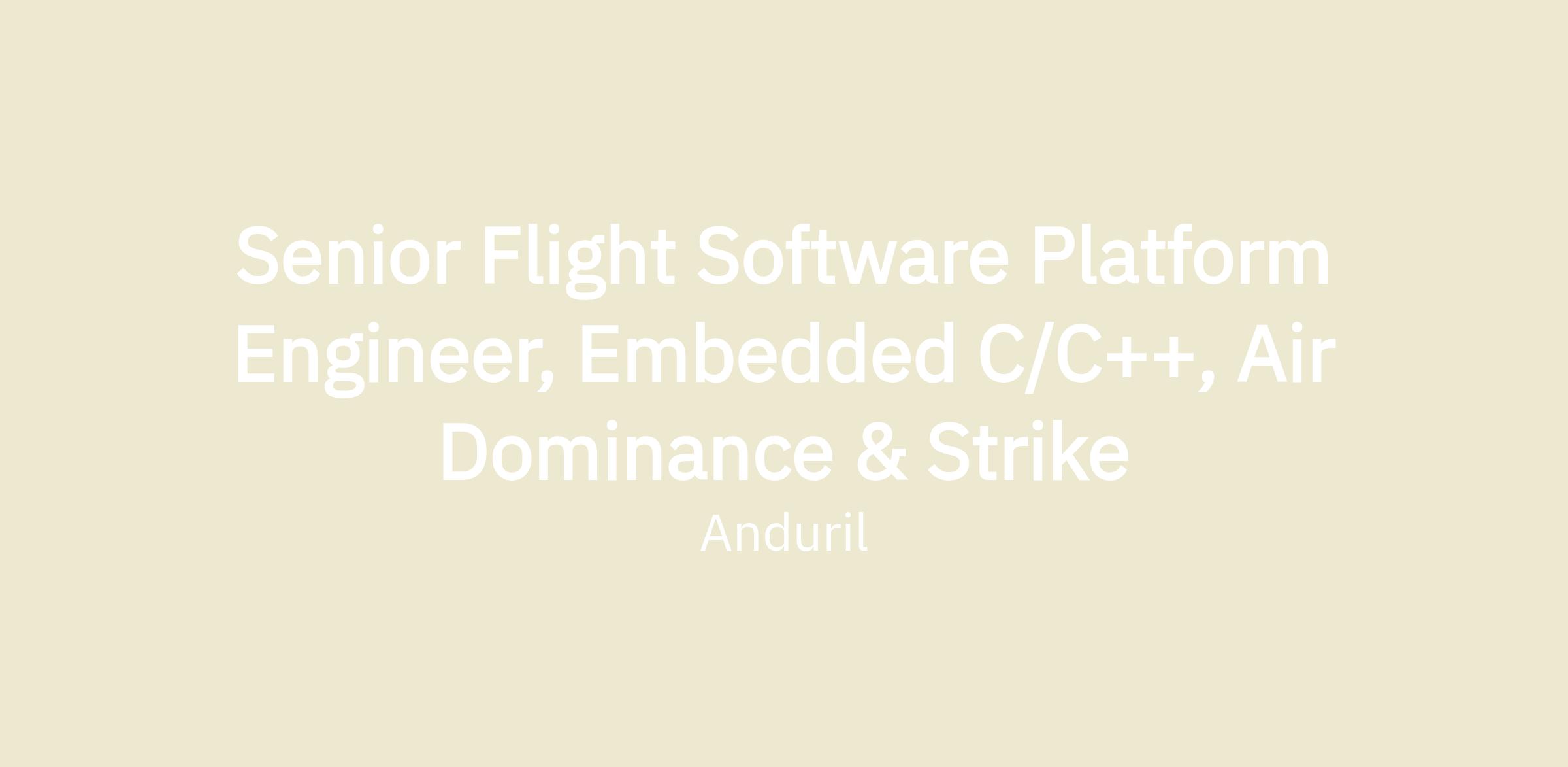 The Flight Software team at Anduril develops flight computer vehicle software for all airborne and subsea vehicles. The right person for this role has experience in both commercial (product focused) and public sector (defense) technical environments, and is looking to leverage their passion for avionics and flight software.