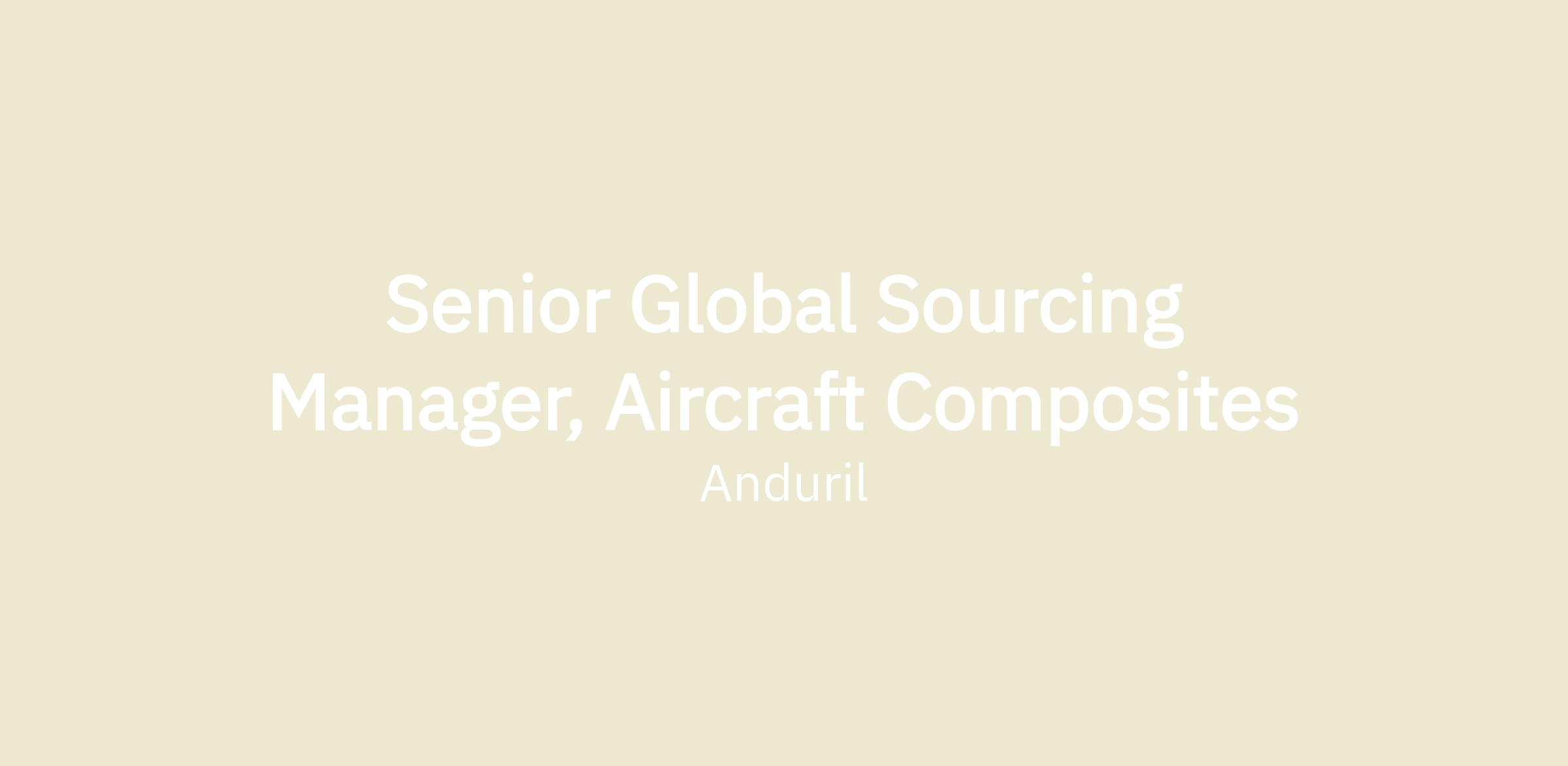 The Senior Global Sourcing Manager, Aircraft Composites is the domain expert for the composites commodities for Anduril Industries. This is a proactive, high-impact role in securing critical components, materials, and services that power our products. This role will be responsible for developing new supplier and new sourcing partnerships that can be incorporated into new products, as well as existing products to improve their technologies, cost, and quality. There is broad internal cross functional partnership to evaluate supplier opportunities, while ensuring commercial agreements, intellectual property, and statement of works are accurate and well established prior to pipelining.