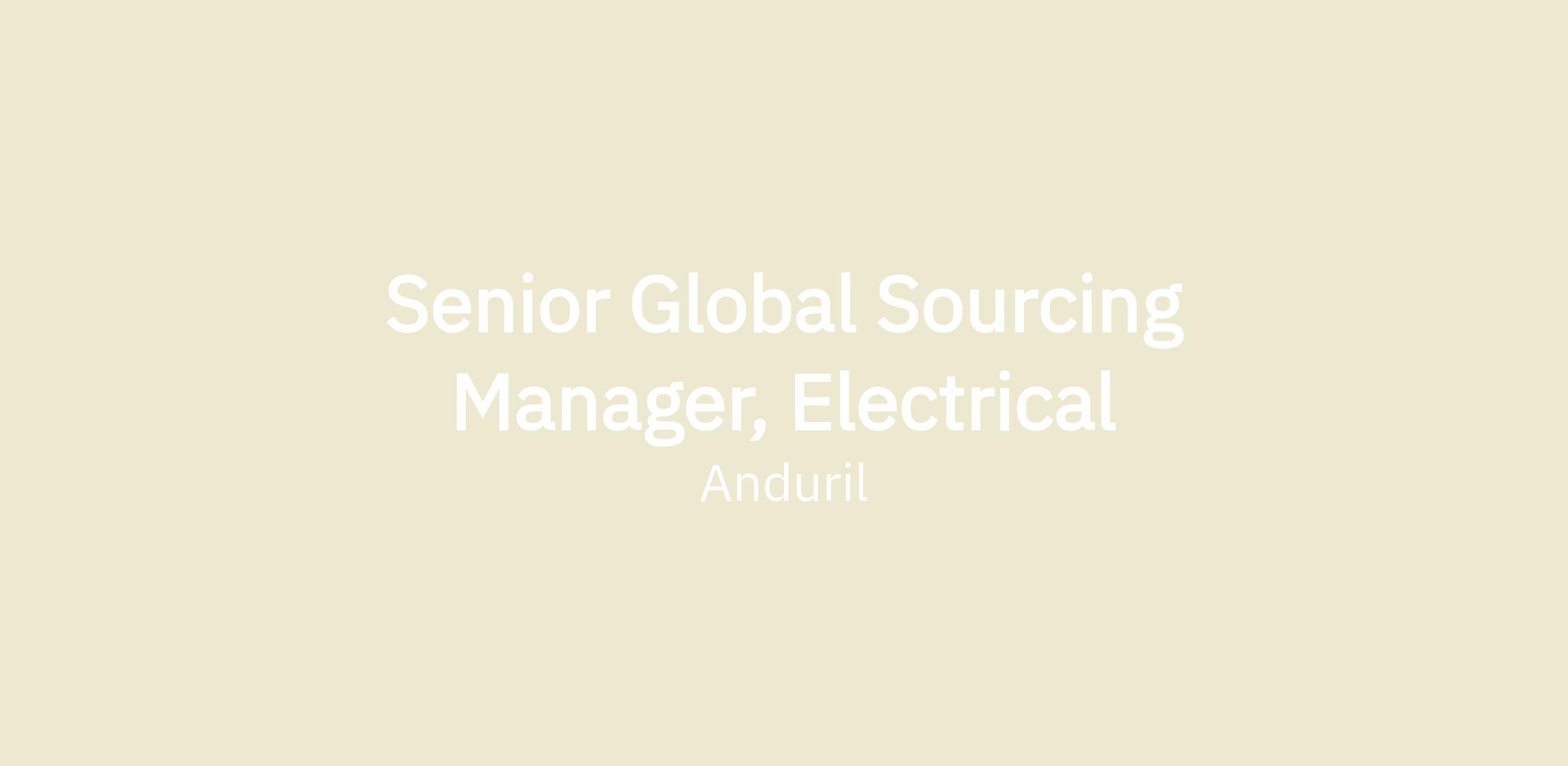 The Senior Global Sourcing Manager, Electrical is the domain expert for the cables/harness commodities for Anduril Industries. This is a proactive, high-impact role in securing critical components, materials, and services that power our products. This role will be responsible for developing new supplier and new sourcing partnerships that can be incorporated into new products, as well as existing products to improve their technologies, cost, and quality. There is broad internal cross functional partnership to evaluate supplier opportunities, while ensuring commercial agreements, intellectual property, and statement of works are accurate and well established prior to pipelining.