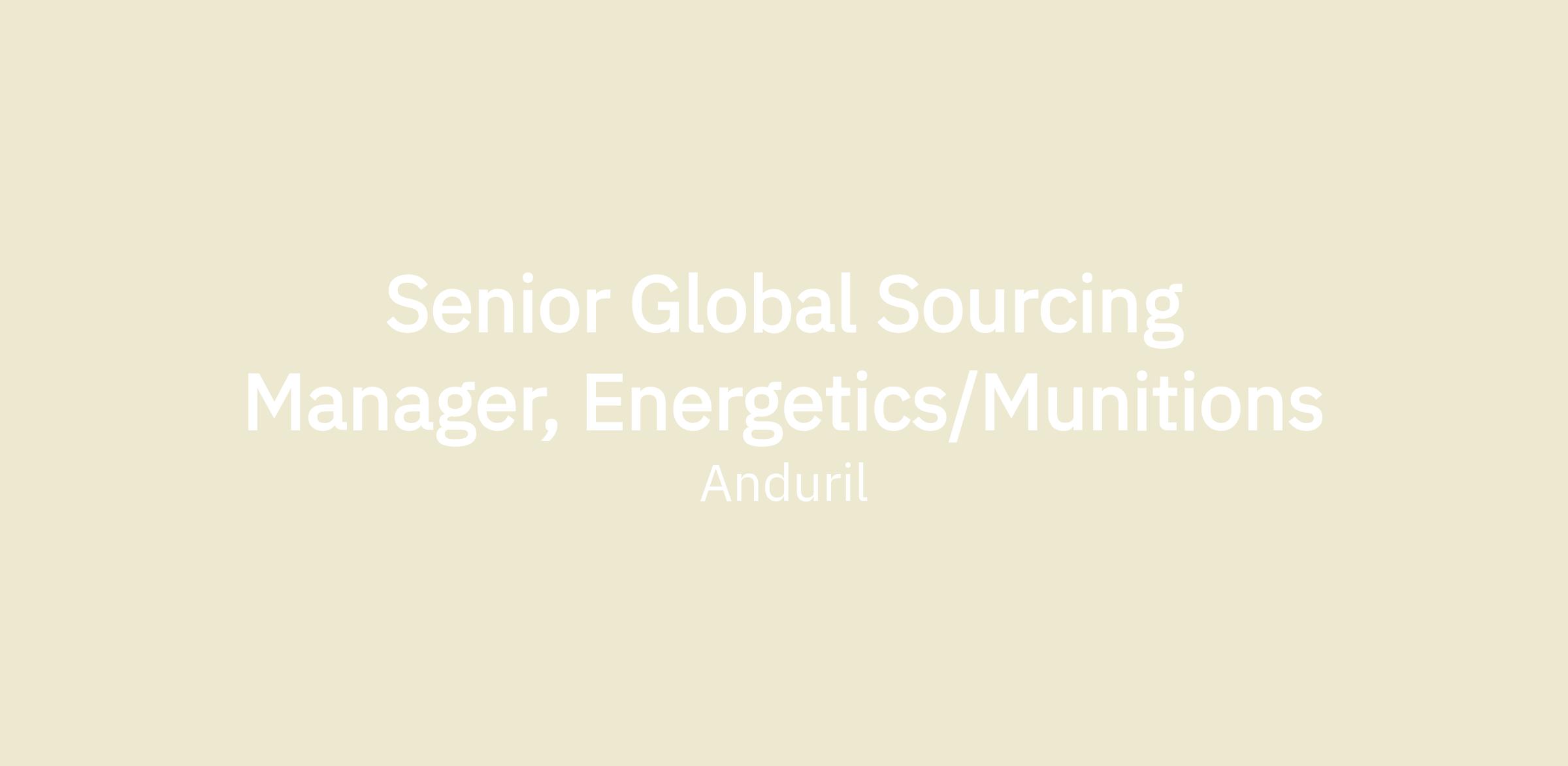 The Senior Global Sourcing Manager, Energetics is the domain expert for the energetics commodities for Anduril Industries. This is a proactive, high-impact role in securing critical components, materials, and services that power our products. This role will be responsible for developing new supplier and new sourcing partnerships that can be incorporated into new products, as well as existing products to improve their technologies, cost, and quality. There is broad internal cross functional partnership to evaluate supplier opportunities, while ensuring commercial agreements, intellectual property, and statement of works are accurate and well established prior to pipelining.