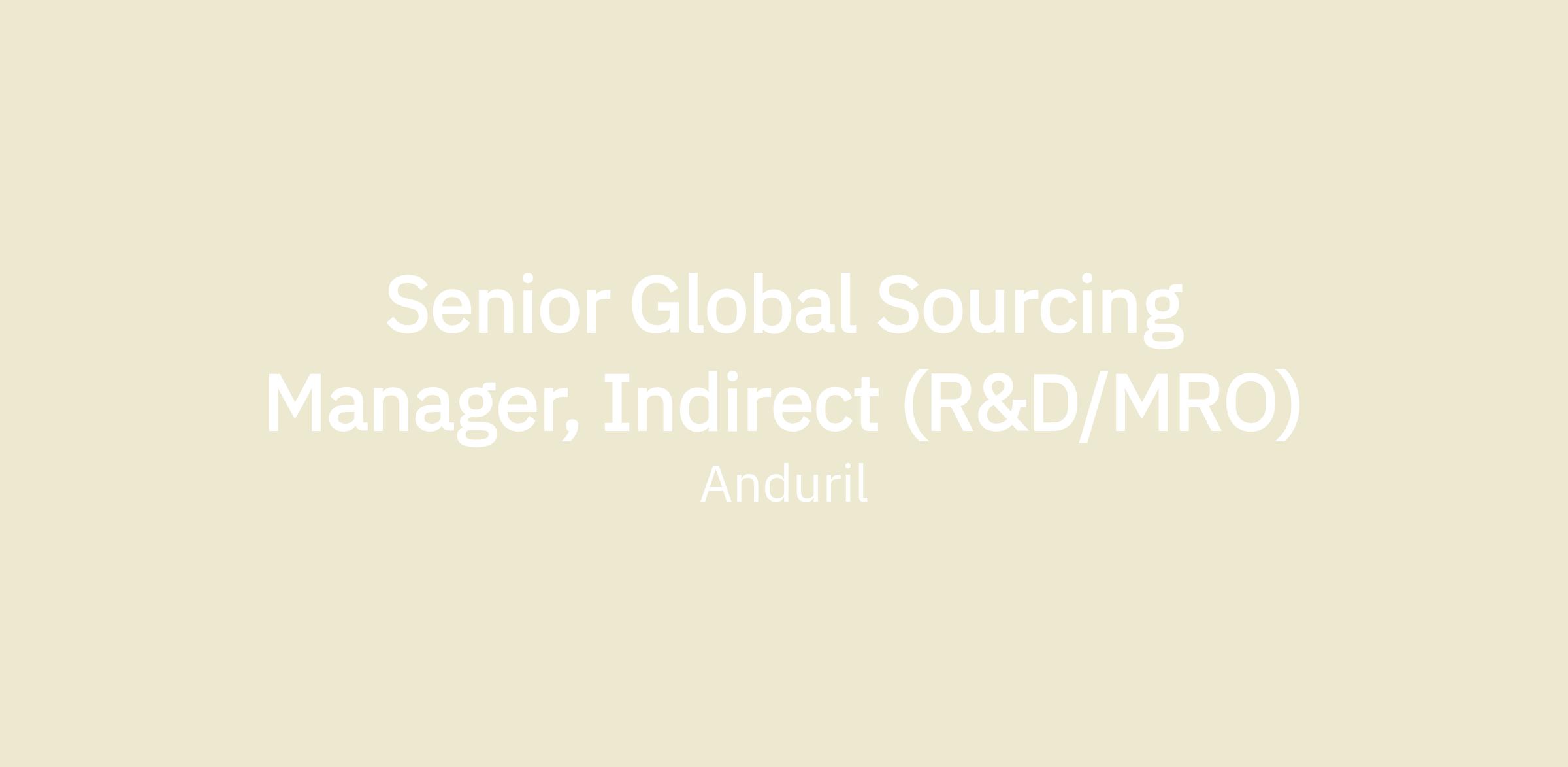 The Senior Global Sourcing Manager, Indirect R&D is the domain expert in dedicated Research & Development and Maintenance Repair Operations commodities for Anduril Industries. This role will be responsible for developing new supplier and new sourcing partnerships that can be incorporated into new infrastructure/products, as well as existing infrastructure/products to improve their technologies, cost, and quality. This hire will work with the broader internal cross functional teams to evaluate the opportunities, while ensuring commercial agreements, intellectual property, and statement of works are accurate and well established prior to pipelining.