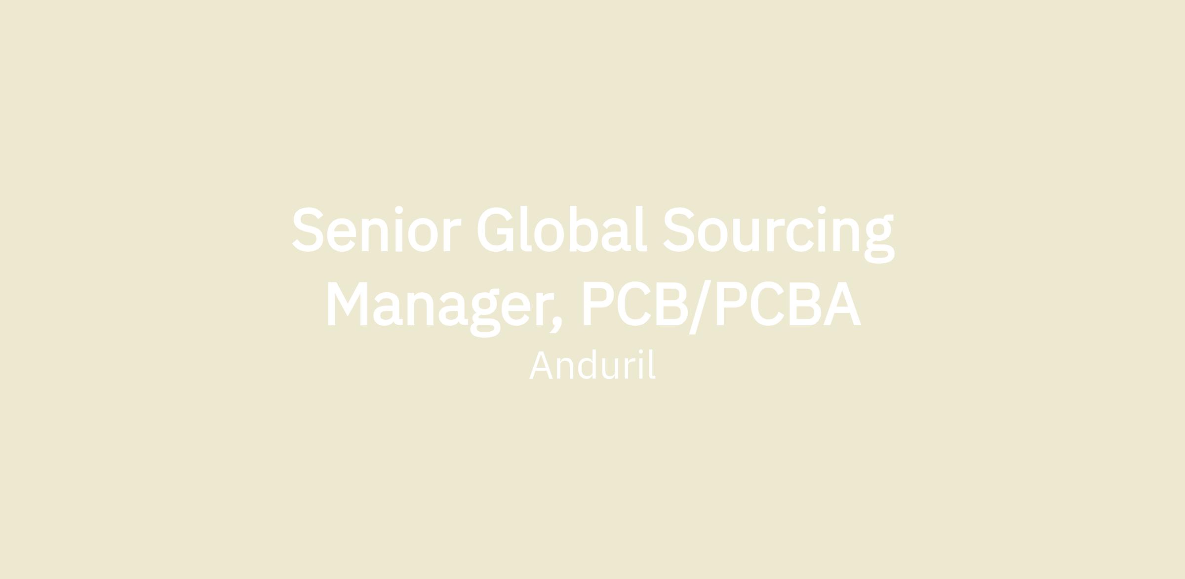 The Senior Global Sourcing Manager, PCB/PCBA is the domain expert for the PCB/PCBA commodities for Anduril Industries. This is a proactive, high-impact role in securing critical components, materials, and services that power our products. This role will be responsible for developing new supplier and new sourcing partnerships that can be incorporated into new products, as well as existing products to improve their technologies, cost, and quality. There is broad internal cross functional partnership to evaluate supplier opportunities, while ensuring commercial agreements, intellectual property, and statement of works are accurate and well established prior to pipelining.