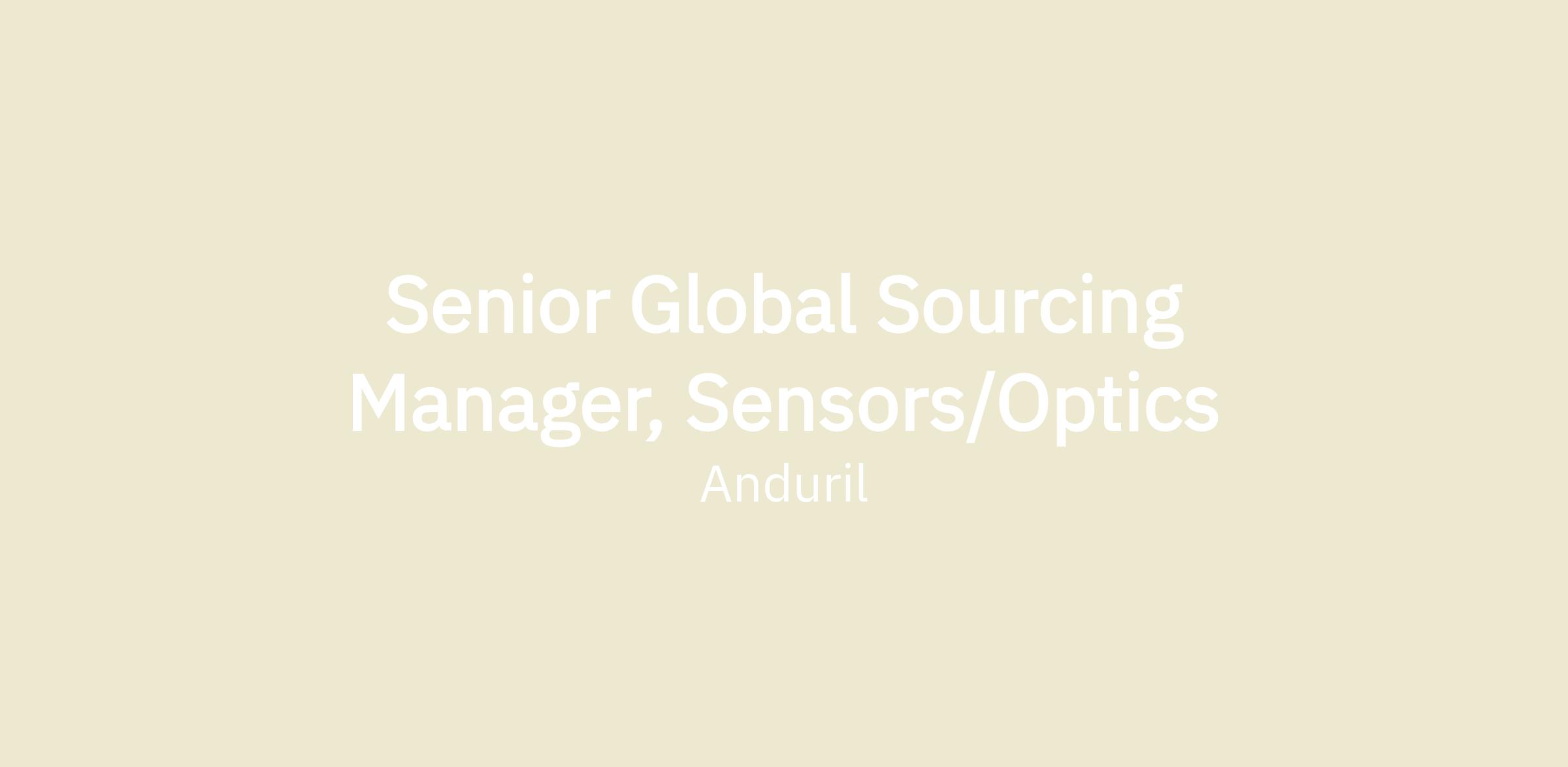 The Senior Global Sourcing Manager, Sensors/Optics is the domain expert for the sensor/optics commodities for Anduril Industries. This is a proactive, high-impact role in securing critical components, materials, and services that power our products. This role will be responsible for developing new supplier and new sourcing partnerships that can be incorporated into new products, as well as existing products to improve their technologies, cost, and quality. There is broad internal cross functional partnership to evaluate supplier opportunities, while ensuring commercial agreements, intellectual property, and statement of works are accurate and well established prior to pipelining.