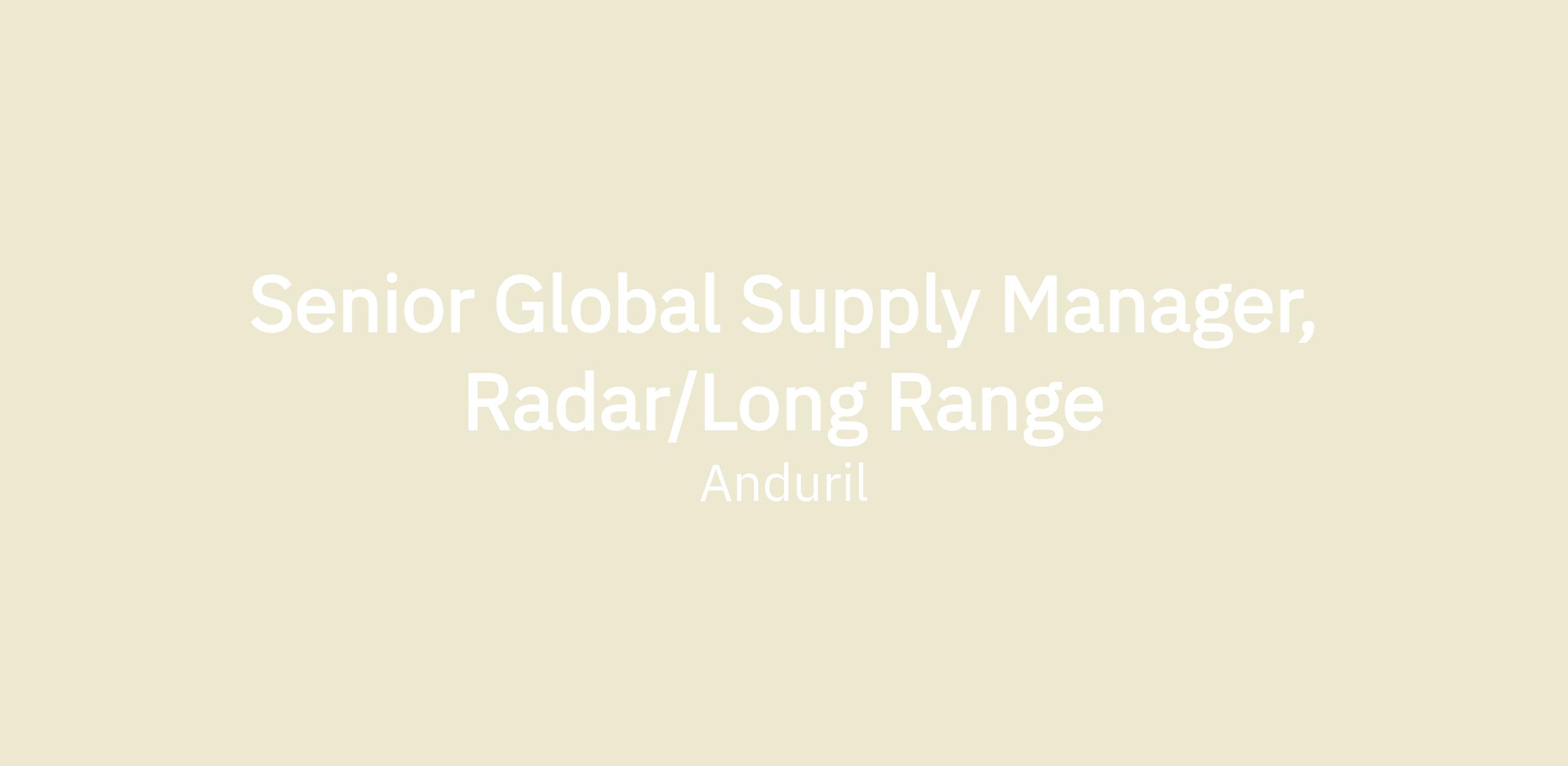 The Senior Global Supply Manager, Radar (internally known at Anduril as a Senior Global Sourcing Manager), is the domain expert for the radar commodities for Anduril Industries. This is a proactive, high-impact role in securing critical components, materials, and services that power our products. This role will be responsible for developing new supplier and new sourcing partnerships that can be incorporated into new products, as well as existing products to improve their technologies, cost, and quality. There is broad internal cross functional partnership to evaluate supplier opportunities, while ensuring commercial agreements, intellectual property, and statement of works are accurate and well established prior to pipelining.