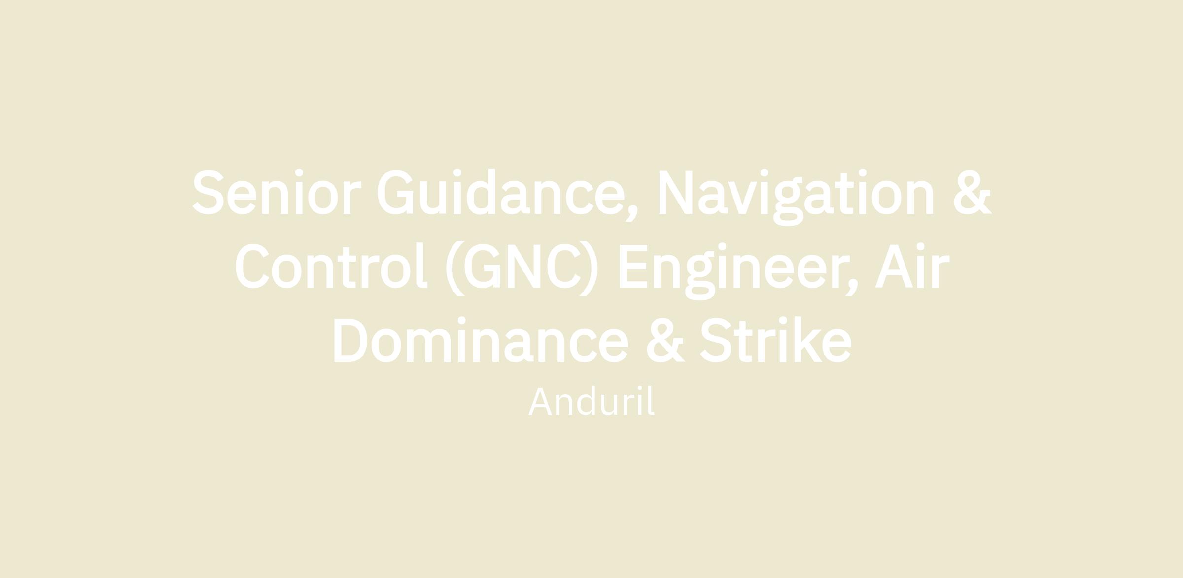 Anduril’s Flight Engineering department is part of the Air Dominance and Strike organization. We are seeking Guidance, Navigation and Control (GNC) Engineers to join our team. The Anduril Flight Engineering team is integral to development of flight system solutions in all domains for our warfighters. As a critical member of our team, the role of a Guidance, Navigation, and Control (GNC) Engineer is pivotal in driving the design, development, testing, and implementation of cutting-edge flight system technologies for our aerospace systems. Anduril fosters a dynamic learning culture, characterized by accelerated knowledge acquisition through modeling, simulation, analysis, and rigorous and frequent ground and flight test experimentation. At Anduril, you will be involved in flight testing the systems you develop.