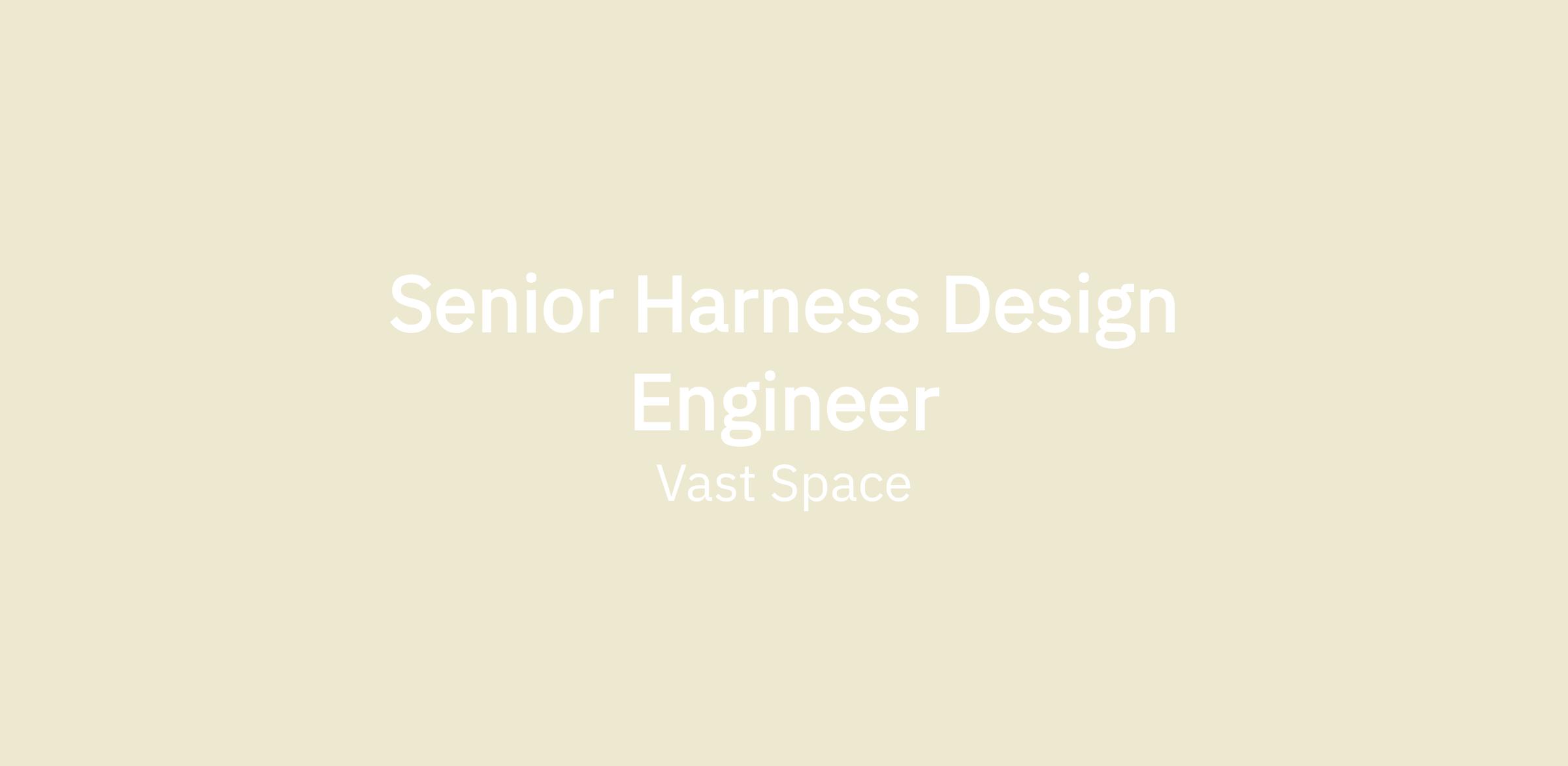 Vast is looking for a Senior Harness Design Engineer, reporting to the VP, Avionics, to support the development of the systems that will be required for the design and manufacturing of artificial-gravity human-rated space stations. This will be a full-time, exempt position located in our Long Beach location.