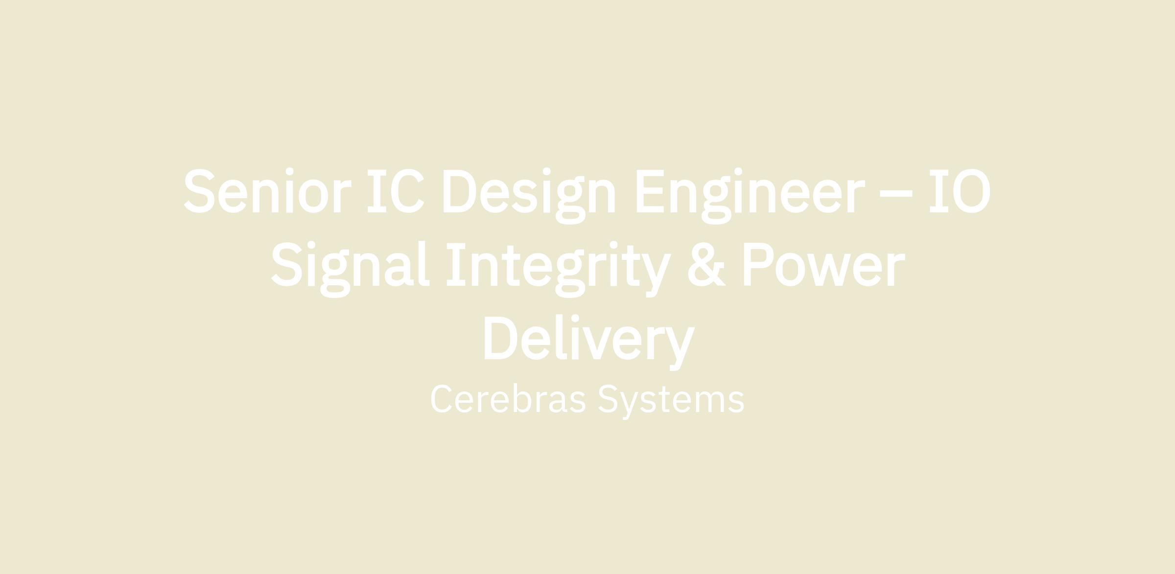 Senior IC Design Engineer – IO Signal Integrity & Power Delivery