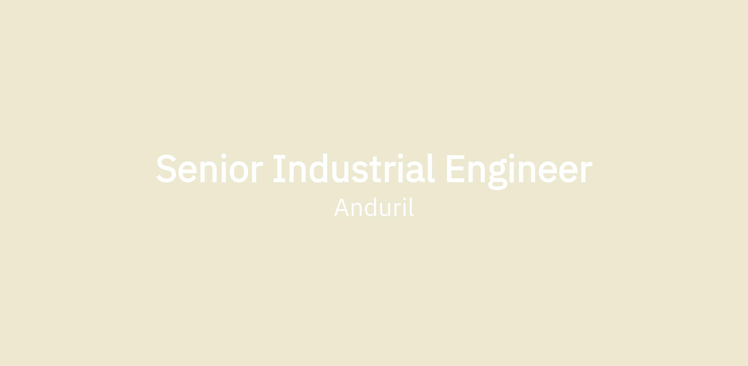 Anduril’s Manufacturing Team is seeking a Senior Industrial Engineer to join our team with an emphasis on manufacturing optimization. The role will support the development of simulation and optimization models to predict the behavior of manufacturing processes to drive real world adaptations. Executing on this responsibility will entail active collaboration with other Anduril teams, including but not limited to Supply Chain, Engineering, Quality, and Business Operations. The Manufacturing Team is responsible for rapidly iterating and building cutting-edge defense hardware, including static equipment, moving ground equipment, sensors, undersea, and flight vehicles, and scaling these products in our new 5M sq ft manufacturing facility,