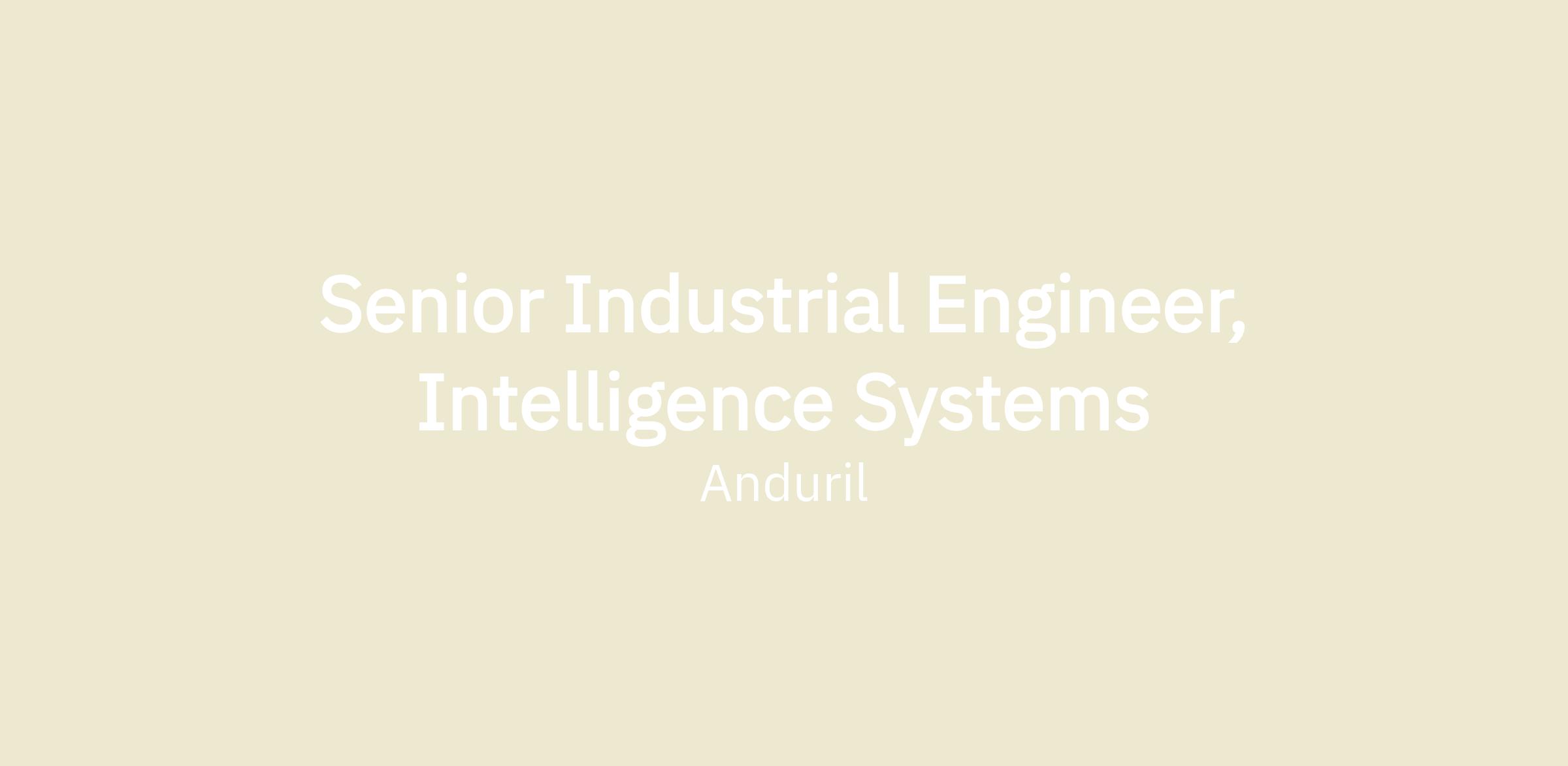 Anduril’s Manufacturing Team is seeking a Senior Industrial Engineer to join our team. The role will support the development of simulation and optimization models to predict the behavior of manufacturing processes to drive real world adaptations. Executing on this responsibility will entail active collaboration with other Anduril teams, including but not limited to Supply Chain, Engineering, Quality, and Business Operations. The Manufacturing Team is responsible for rapidly iterating and building cutting-edge defense hardware, including static equipment, moving ground equipment, sensors, undersea, and flight vehicles, and scaling these products in our new 5M sq ft manufacturing facility, Arsenal-1.