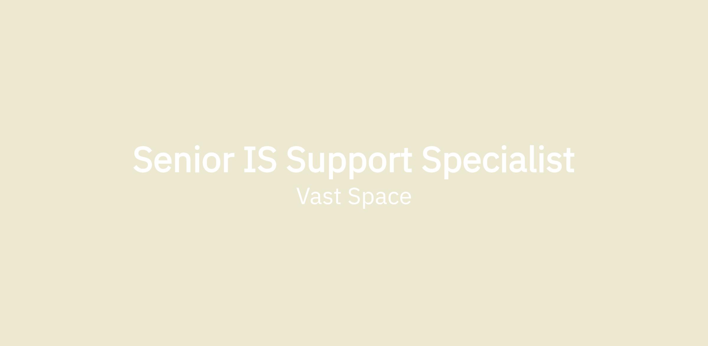 Vast is looking for a Senior Information Systems Support Specialist, reporting to the Manager, Technology Operations, to support the development of the systems that will be required for the design and build of artificial-gravity human-rated space stations.