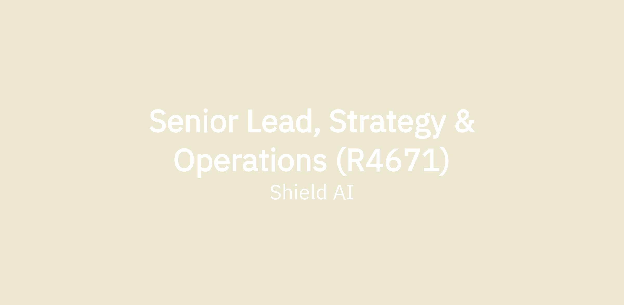 Senior Lead, Strategy & Operations (R4671)
