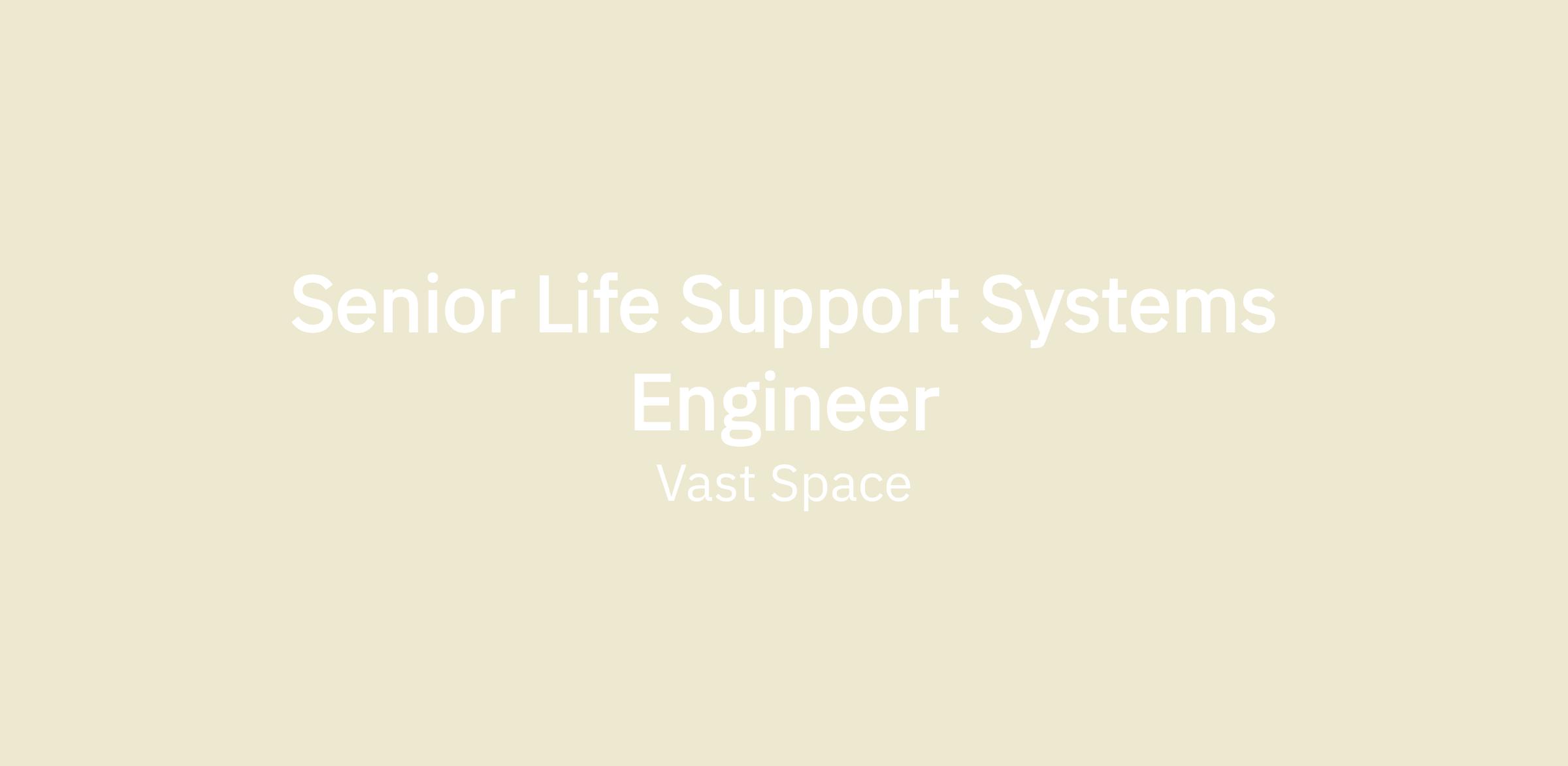 Vast is looking for a(n) Senior Life Support Systems Engineer, reporting to the Director of Life Support Systems, to support the development of the systems that will be required for the design and build of artificial-gravity human-rated space stations.