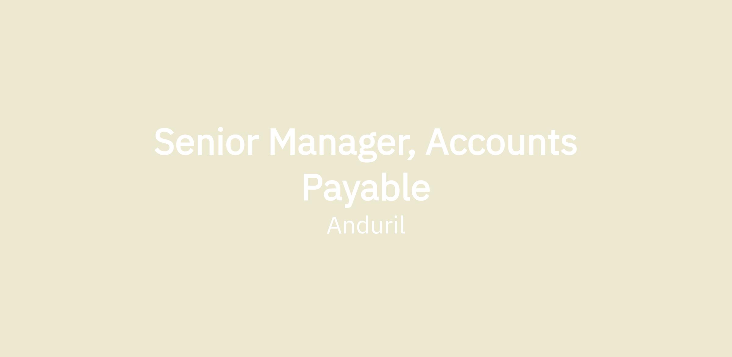 Anduril is seeking a dynamic and forward-thinking Senior Accounts Payable Manager to spearhead our Accounts Payable function. This pivotal role is key in orchestrating a seamless procure-to-pay process, ensuring accuracy, efficiency, and timeliness in all AP transactions.