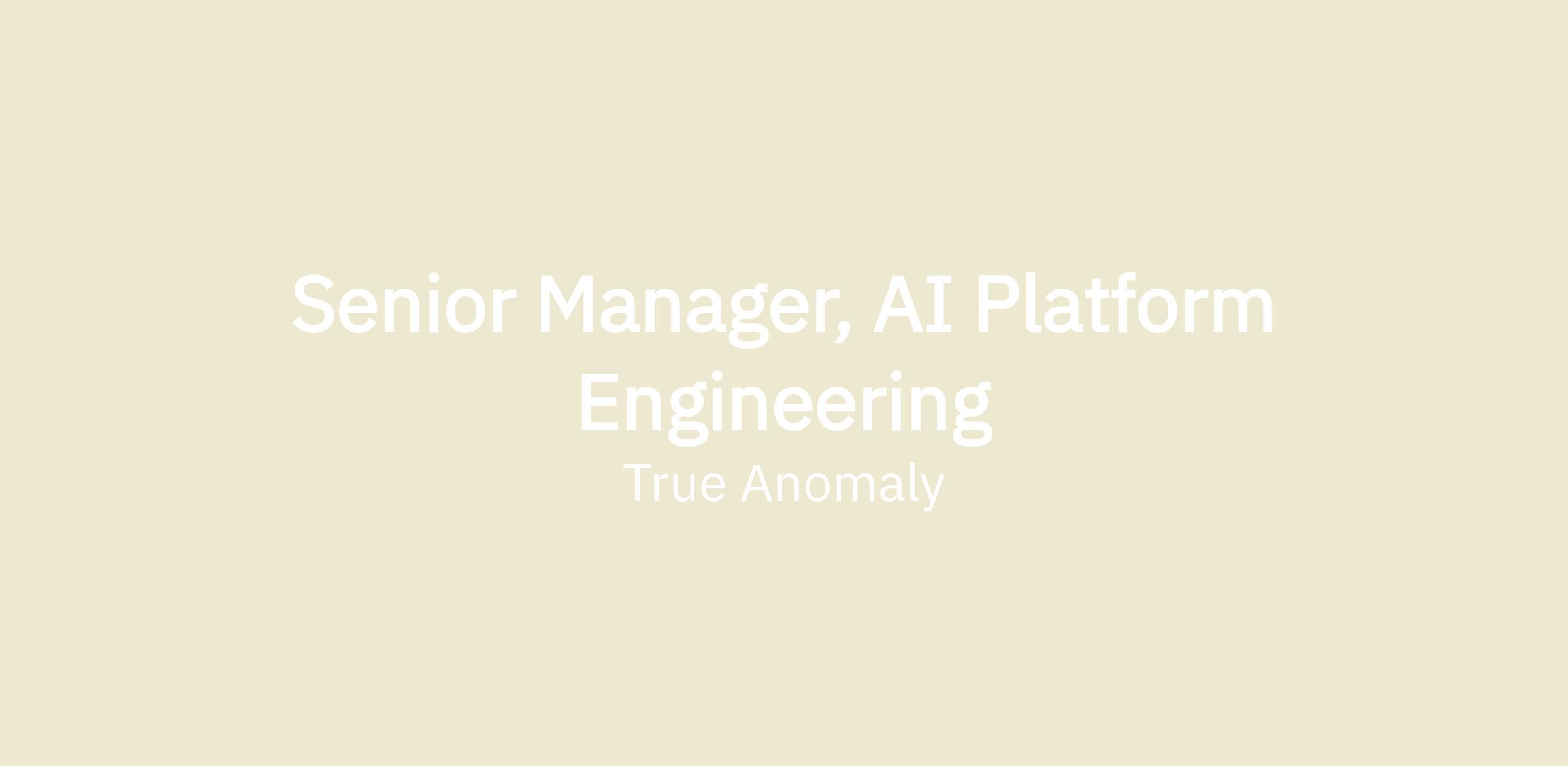 True Anomaly is becoming an AI-first company. Every function, from engineering to manufacturing to business operations, is expected to work with AI as a core part of their workflow. There is no AI engineering team today, no internal model hosting infrastructure, and no agent platform. As Senior Manager of AI Engineering, you will build all of it. You will own the AI platform: model hosting, agent frameworks, enterprise AI tooling, and the infrastructure that connects AI capabilities to the systems where work happens. You will also own AI enablement across the company, embedding with teams to identify high-value use cases and deploying the tools and patterns that make adoption stick. This is a player-coach role with full executive sponsorship. You will be making architecture decisions and shipping code on day one while building a team of 8 engineers around you.