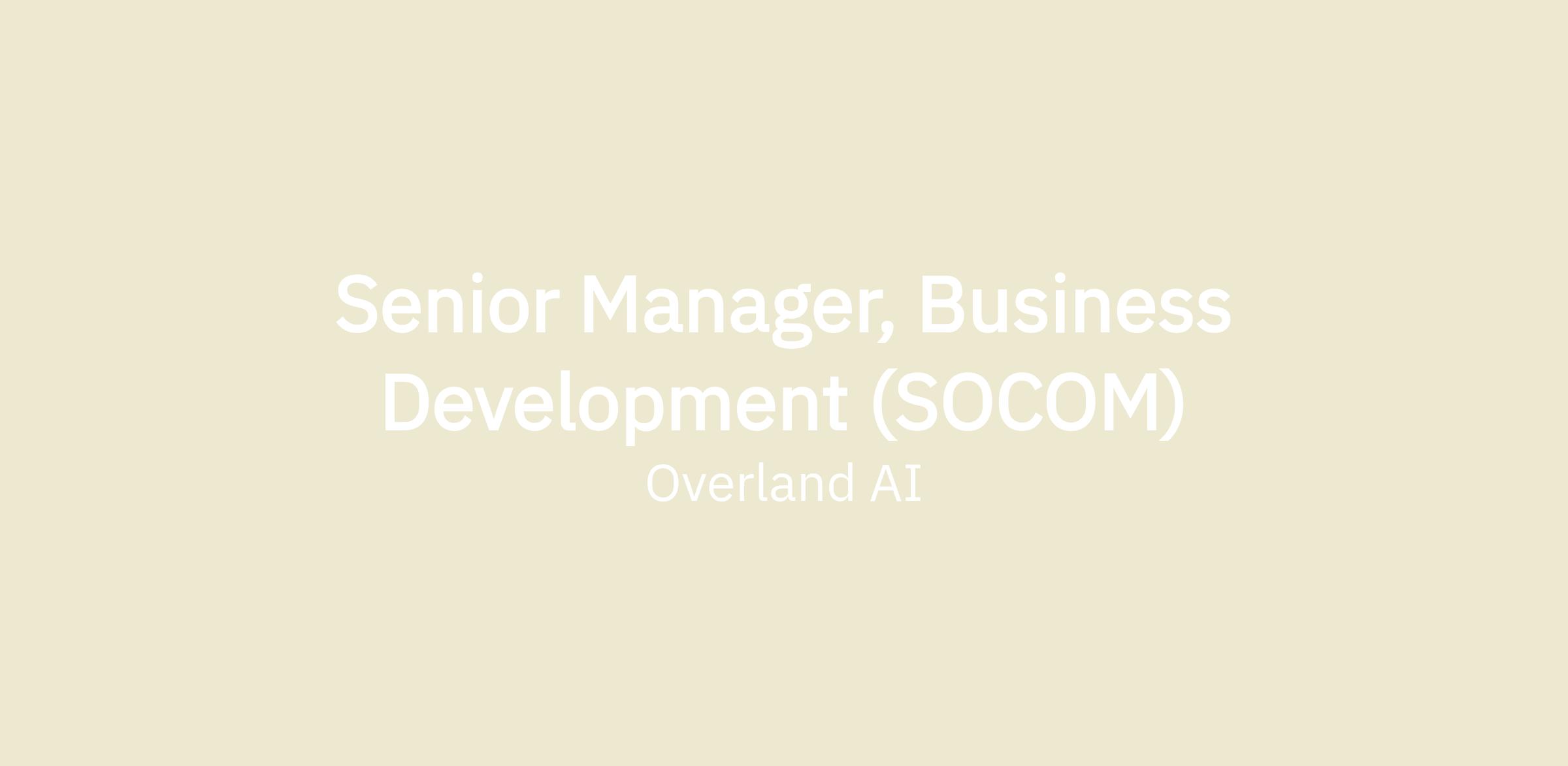 We’re seeking an experienced federal business development manager to join a growing team focused on driving Overland AI’s growth and success with U.S. Special Operations Command (USSOCOM) and the broader SOF enterprise.