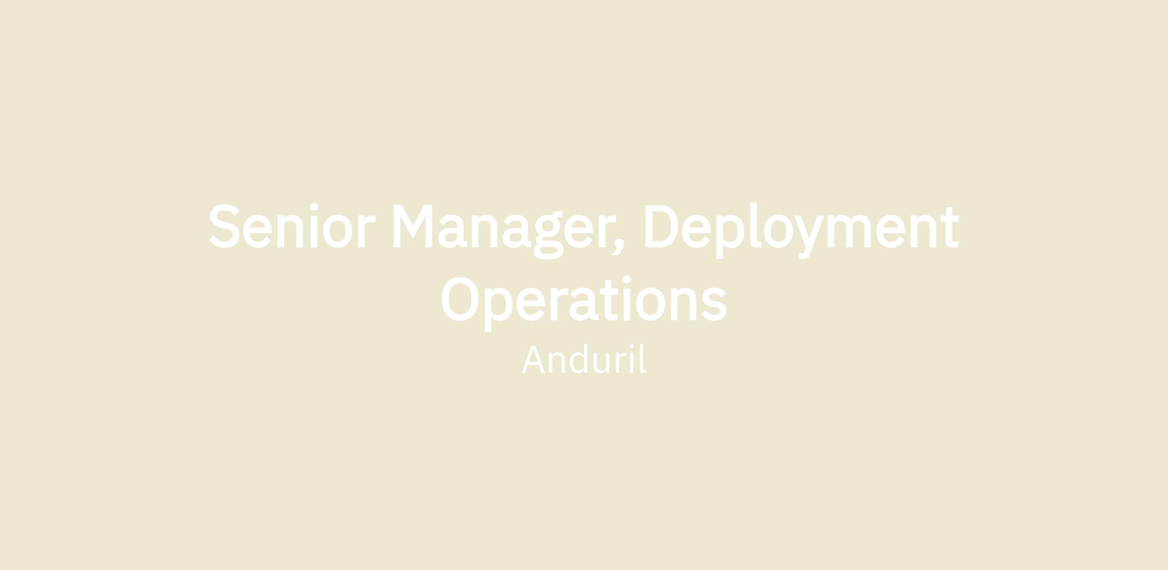 We are seeking a Senior Manager of Deployment Operations to join our rapidly expanding team in Costa Mesa, CA. In this pivotal leadership role, you will be instrumental in defining and executing the strategic vision for deploying Anduril’s people and technology across a global operational footprint within a specific division. You will build, mentor, and lead a high-performing team, fostering a culture of operational excellence and continuous improvement. This role demands exceptional strategic planning, the ability to navigate complex, often ambiguous challenges, and a relentless focus on scaling operations to meet the demands of our expanding product lines and global missions. You will be a critical bridge between strategic objectives and field execution, ensuring the precise deployment of resources to achieve mission success.