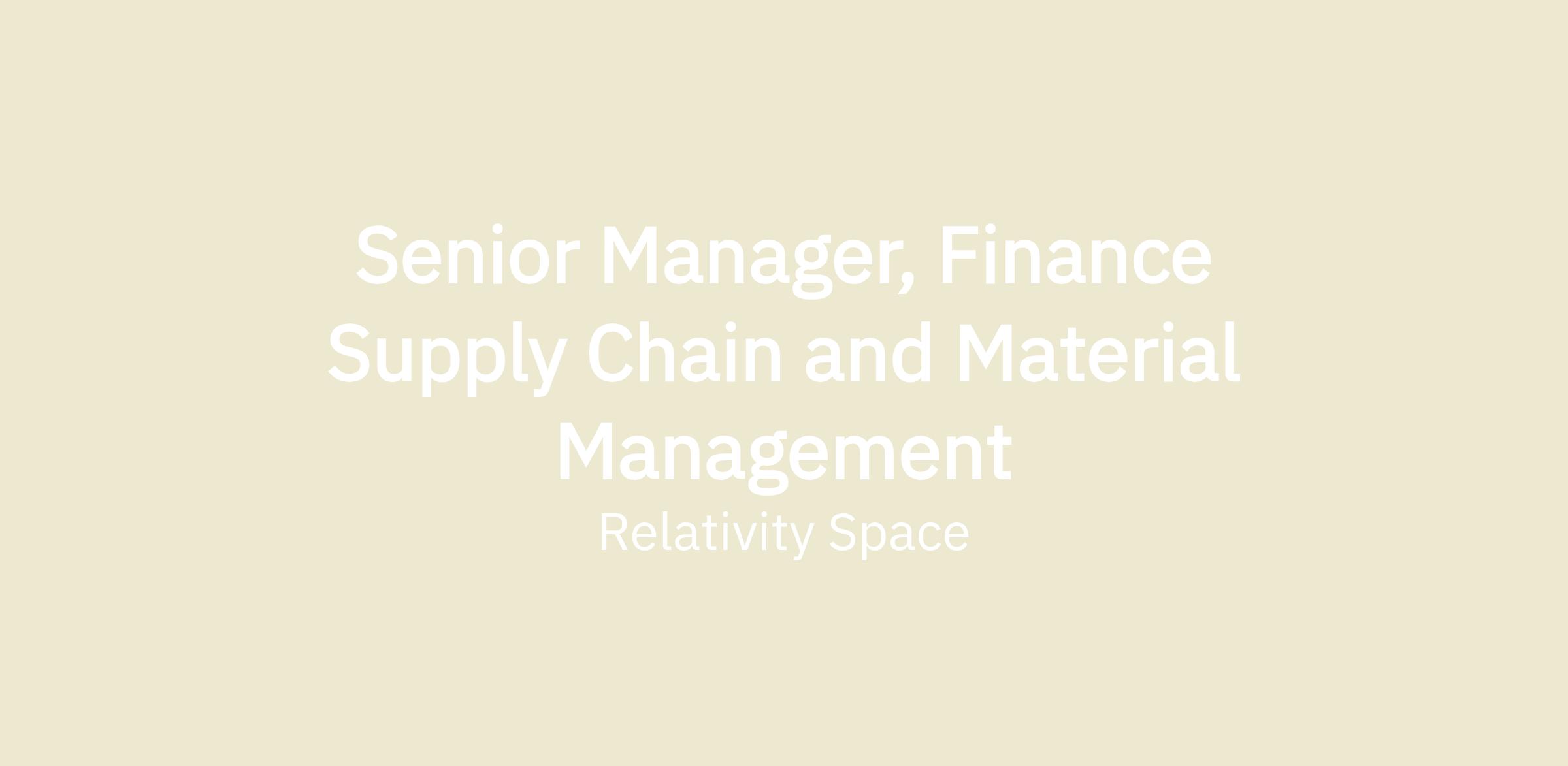Senior Manager, Finance Supply Chain and Material Management