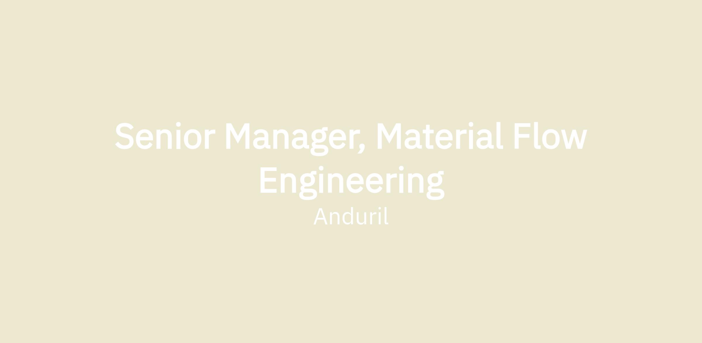 Anduril’s Supply Chain team is seeking a Senior Manager of Material Flow Engineering to join us. Working with a global network of suppliers, to support a global manufacturing platform takes people who are willing to work hard and find ways to win. You will create a strategic plan to optimize warehouse and material flow operations across our Columbus, OH facilities, create a standard set of metrics to monitor team performance, set goals for improving performance, and identify areas to reduce cost while maintaining quality. The right person for this role has extensive supply chain knowledge, has implemented or improved ERP/WMS, and has a track record of managing complex, high-value inventory. If you are someone who can operate autonomously to keep a material flow engineering and warehouse team motivated and enjoys process improvement, this may be the role for you.