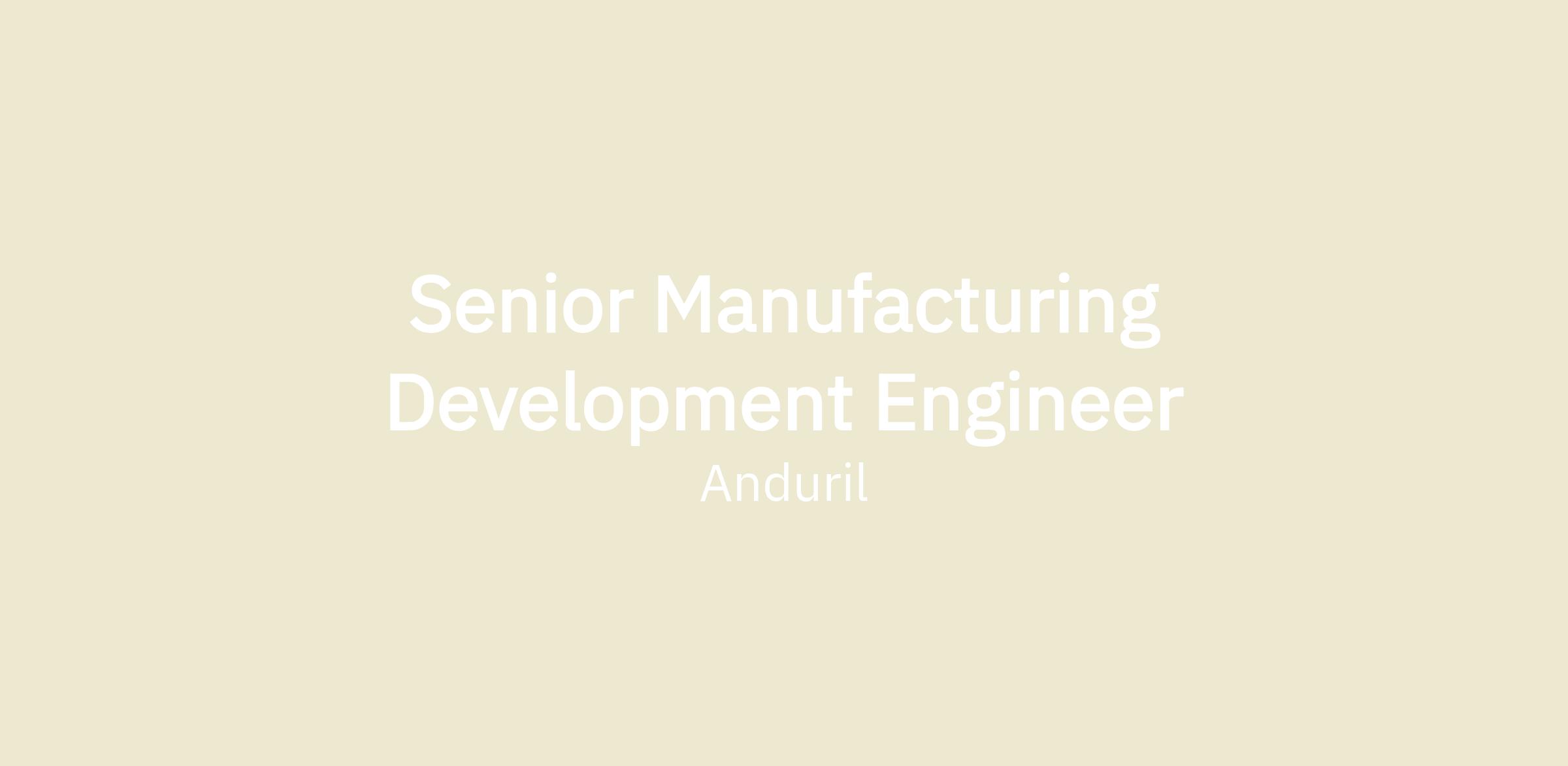 Anduril’s Manufacturing Development team is seeking a Senior Manufacturing Engineer to join our team. The team defines the ‘What’, ‘When’, ‘Why’ and ‘How’ for manufacturing, from advanced manufacturing engineering to NPI to manufacturing operations.