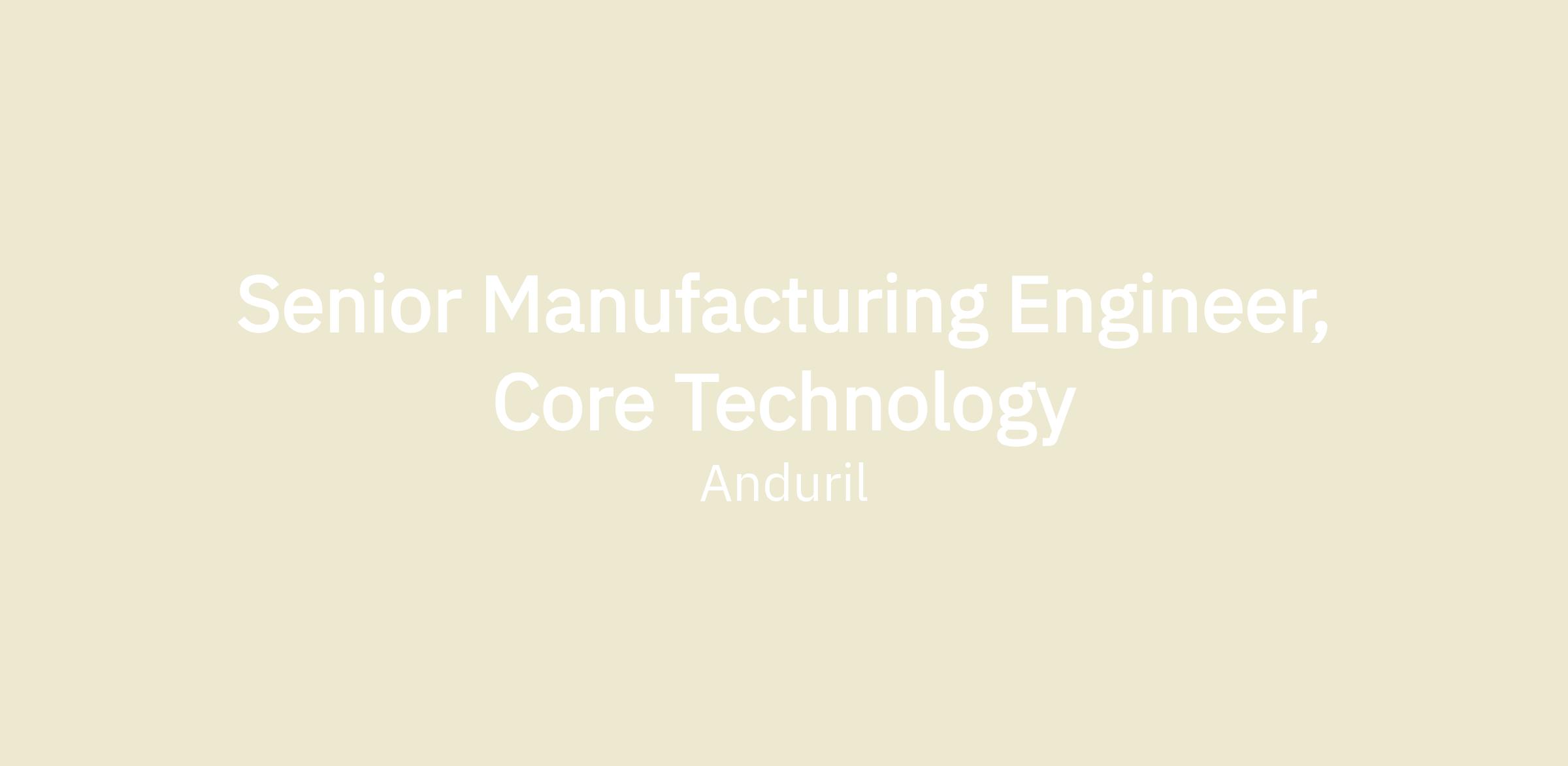 Senior Manufacturing Engineer, Core Technology