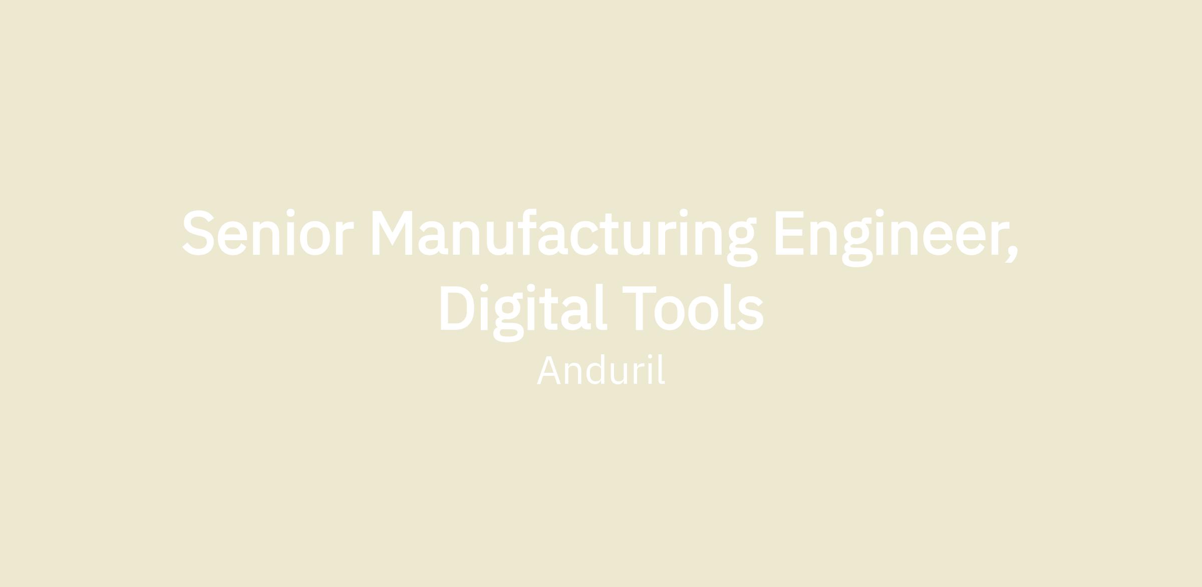 Anduril’s Digital Manufacturing team is seeking a Senior Manufacturing Engineer, Digital Tools to join our team. The Digital Manufacturing team plays a pivotal role in optimizing manufacturing operations through the implementation and management of procedures and advanced digital solutions. The team ensures that manufacturing processes are efficient, scalable, and integrated with the latest industry standards.