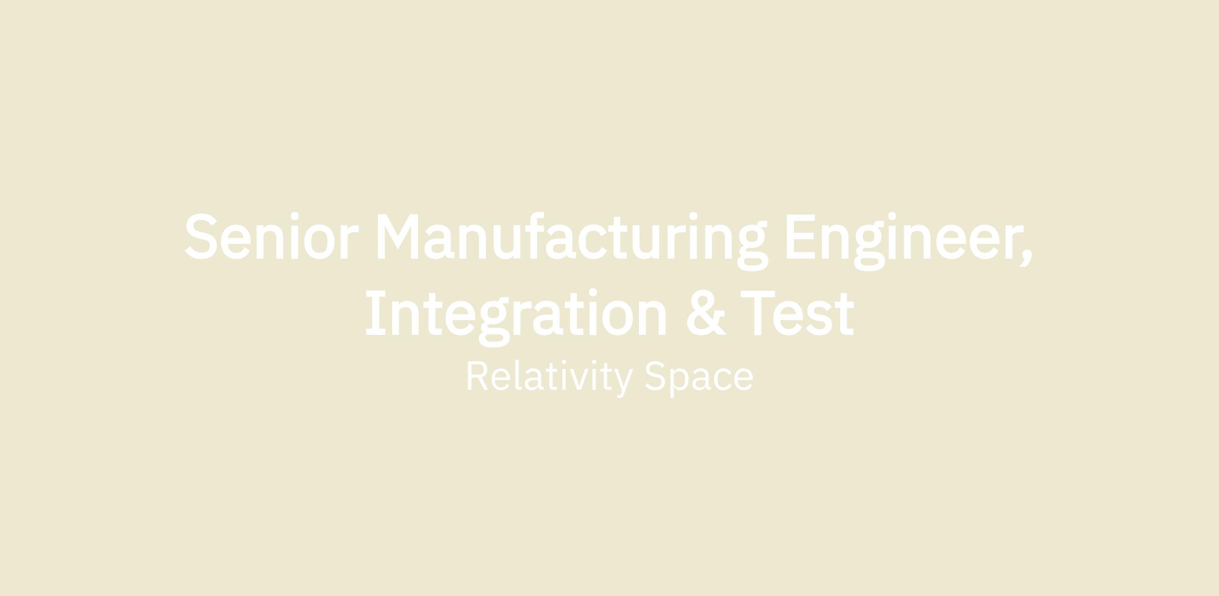 Senior Manufacturing Engineer, Integration & Test