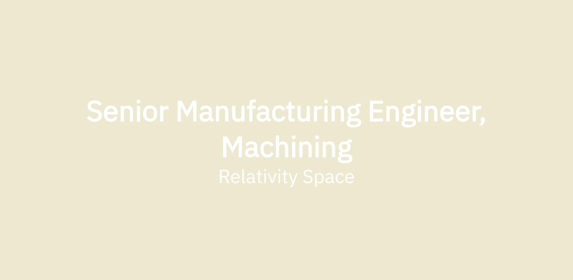 Senior Manufacturing Engineer, Machining