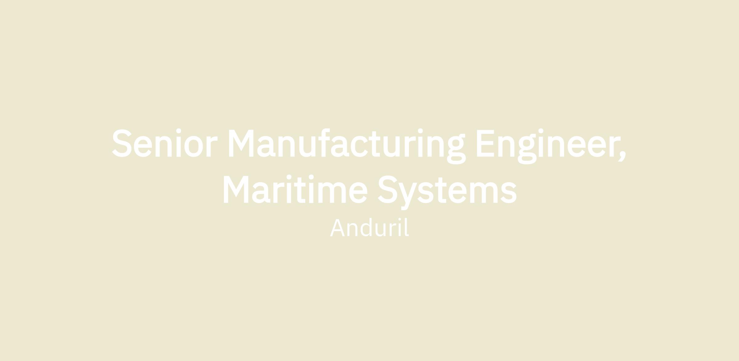 Anduril’s Manufacturing Technology, Maritime Team is seeking a Senior Manufacturing Engineer, Maritime Systems. The Maritime Manufacturing Technology Team is responsible for rapidly developing and implementing manufacturing technologies and processes for cutting-edge defense hardware, including deployable static and moving surface, undersea and sea to air vehicles and scaling these products in our new manufacturing facilities.