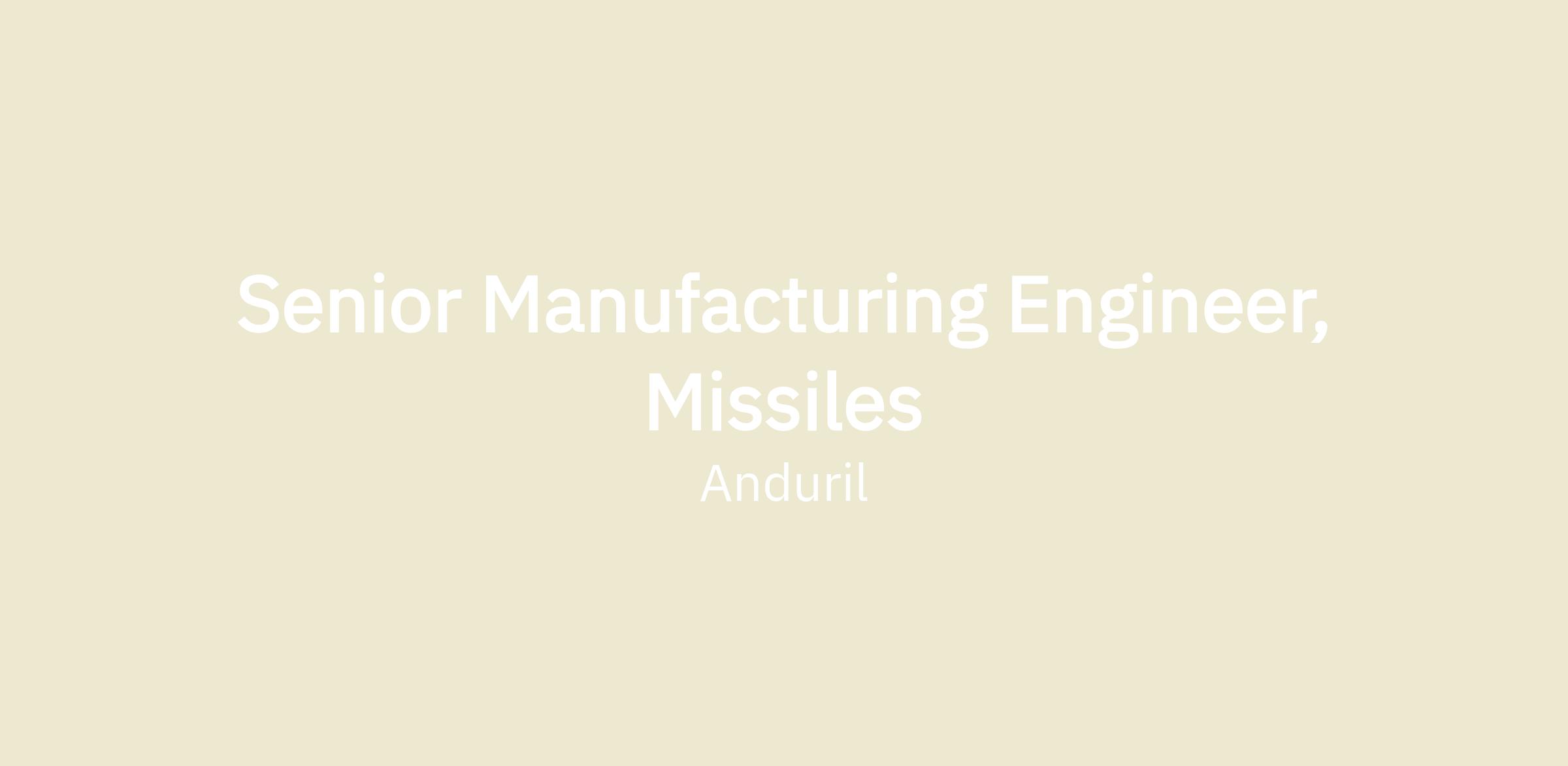 Anduril’s Missiles Manufacturing team is seeking a Senior Manufacturing Engineer to lead the development of manufacturing processes for our advanced defense products. This team is responsible for rapidly iterating and producing cutting-edge hardware, including static equipment, ground systems, and complex vehicles.