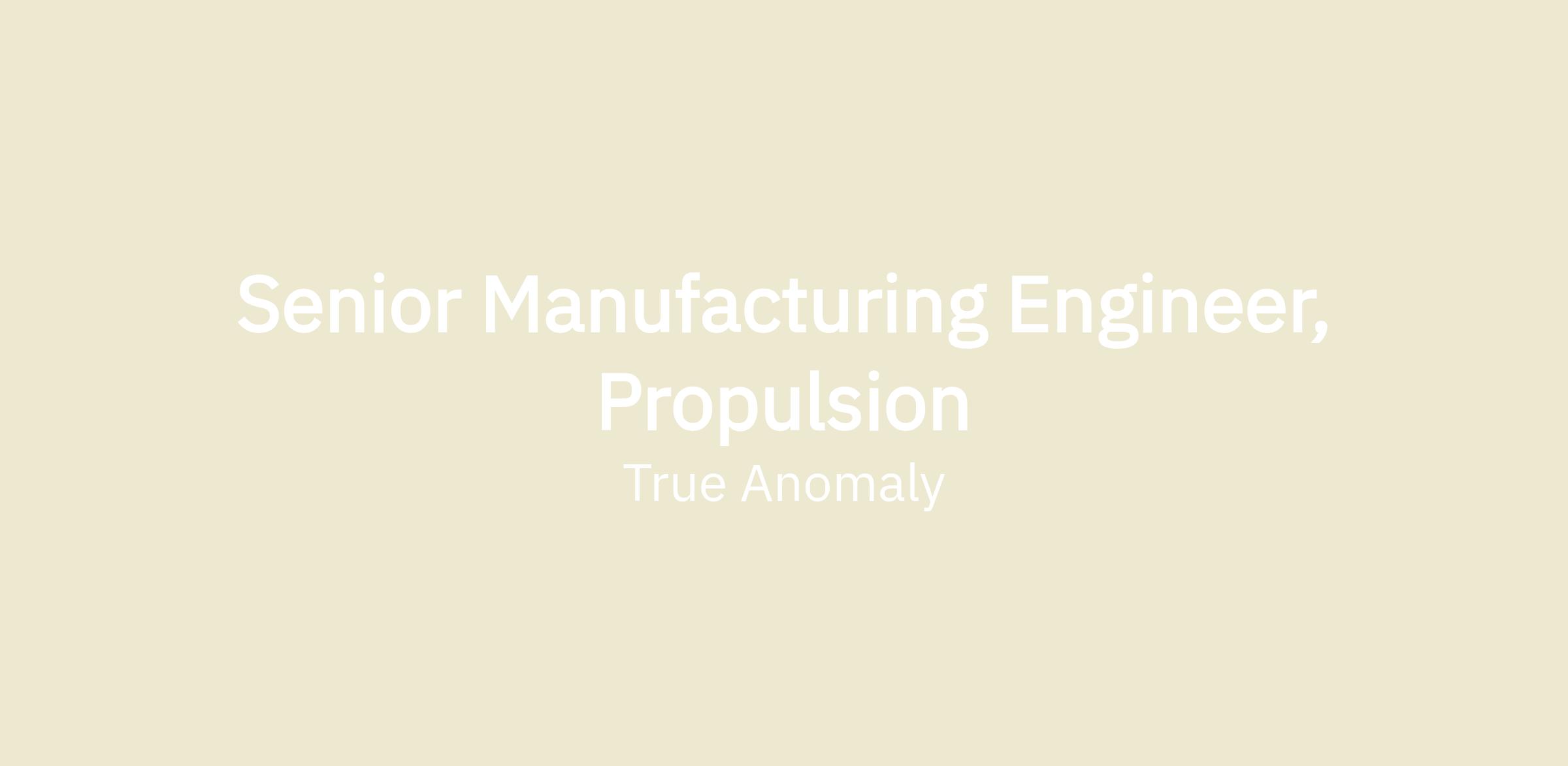 As a Senior Propulsion Manufacturing Engineer at True Anomaly, you will be responsible for development, build, and testing multiple propulsion systems including flight systems and ground test campaigns in the development of our spacecraft. You will be a technical expert for the Propulsion Manufacturing team providing knowledge and mentorship to other engineers. This is an opportunity to build and test our next generation vehicles, shaping the future of space defense from the ground up.