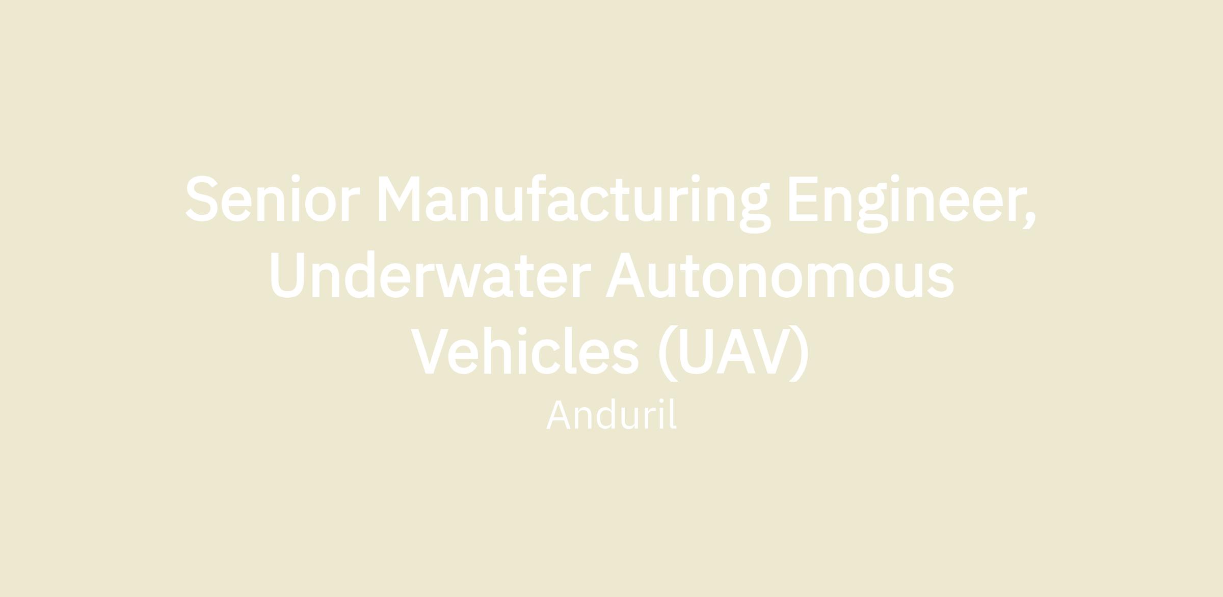 Senior Manufacturing Engineer, Underwater Autonomous Vehicles (UAV)