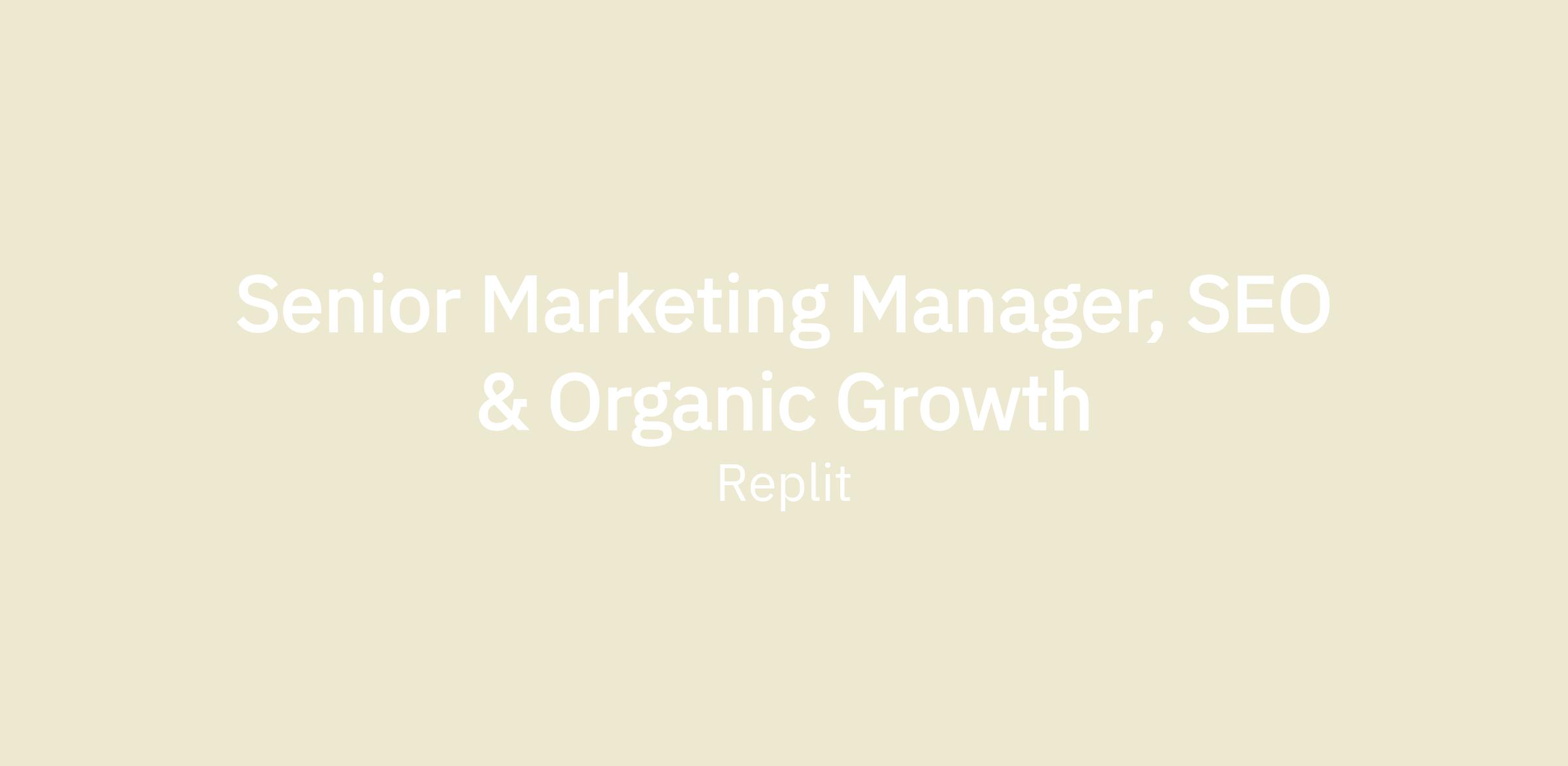 We're looking for a strategic and technical Senior Manager, SEO & Organic Growth to own and scale Replit's organic search presence across traditional search engines, AI-powered platforms, and generative engines. You'll be responsible for driving qualified traffic and improving discoverability as search evolves beyond Google to include ChatGPT, Perplexity, Claude, and other AI platforms.