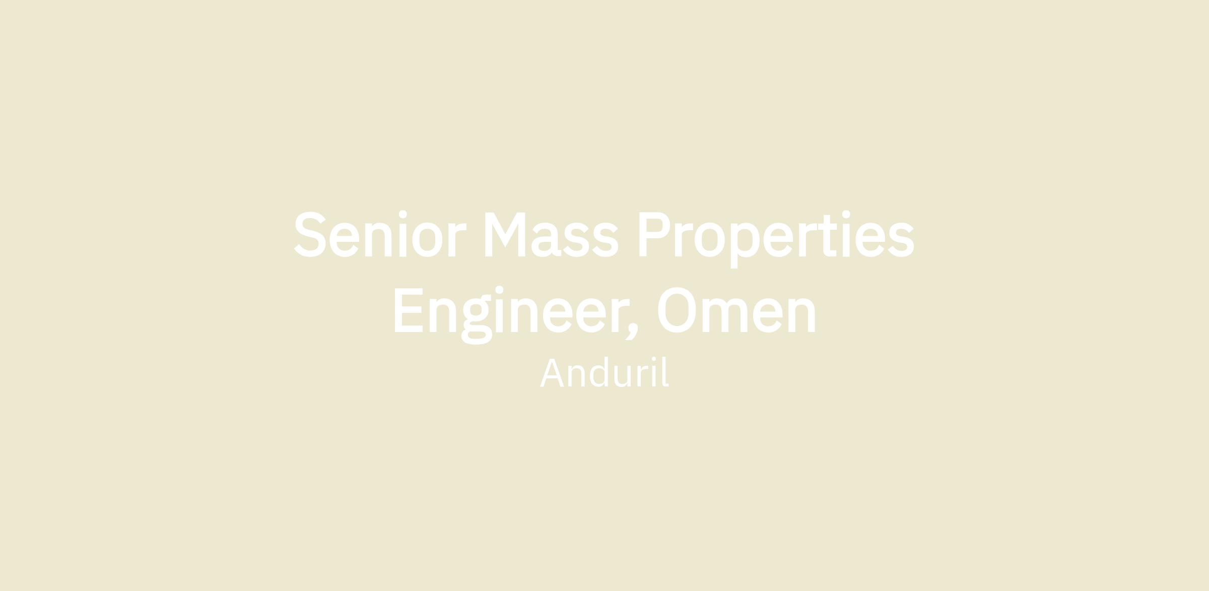 Anduril is seeking a Mass Properties Engineer to join the Omen Team at our Costa Mesa HQ. Omen is Anduril’s hover-to-cruise autonomous air vehicle (AAV) that packs the endurance, payload, and mission flexibility of much larger airplanes into a novel runway-independent Group 3 platform. Omen can operate from ship decks, beaches, or remote island clearings, providing true runway independence and freedom of maneuver across defense and civilian domains. Omen is the first tail-sitter aircraft with a mass-production contract, with an order of 50 systems representing a decisive investment that anchors production and accelerates the development of future systems.