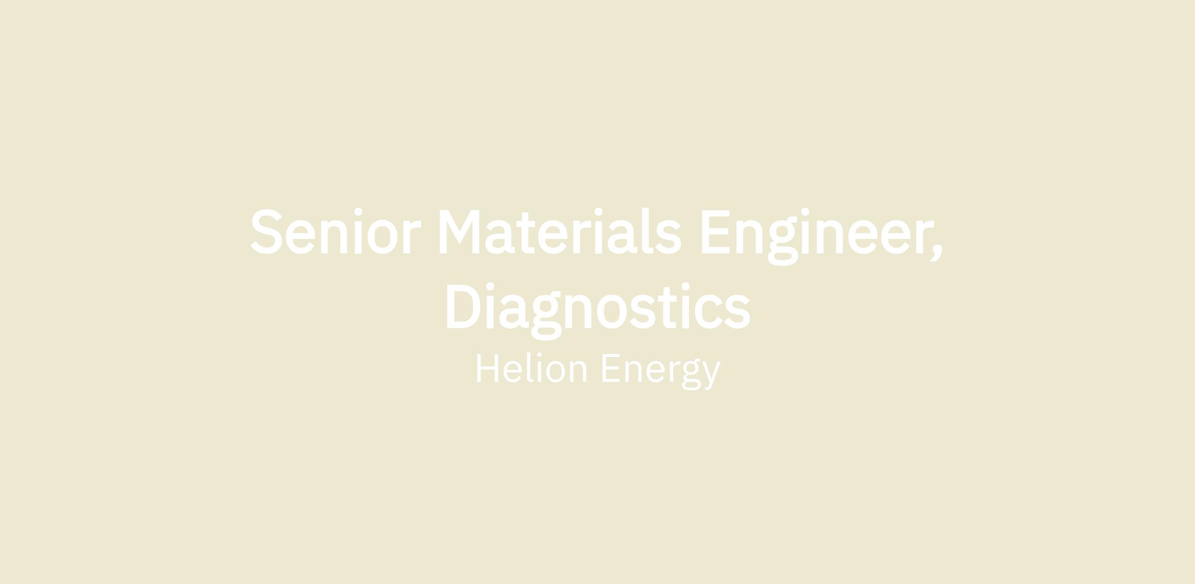 We are looking for a Senior Materials Engineer, Diagnostics to lead the development of materials health monitoring for Helion’s fusion generators. You will design, qualify, and deploy in-situ and ex-situ diagnostics to detect and quantify materials degradation under combined stimuli, including thermomechanical stress, radiation, high electric fields, and coolant environments.