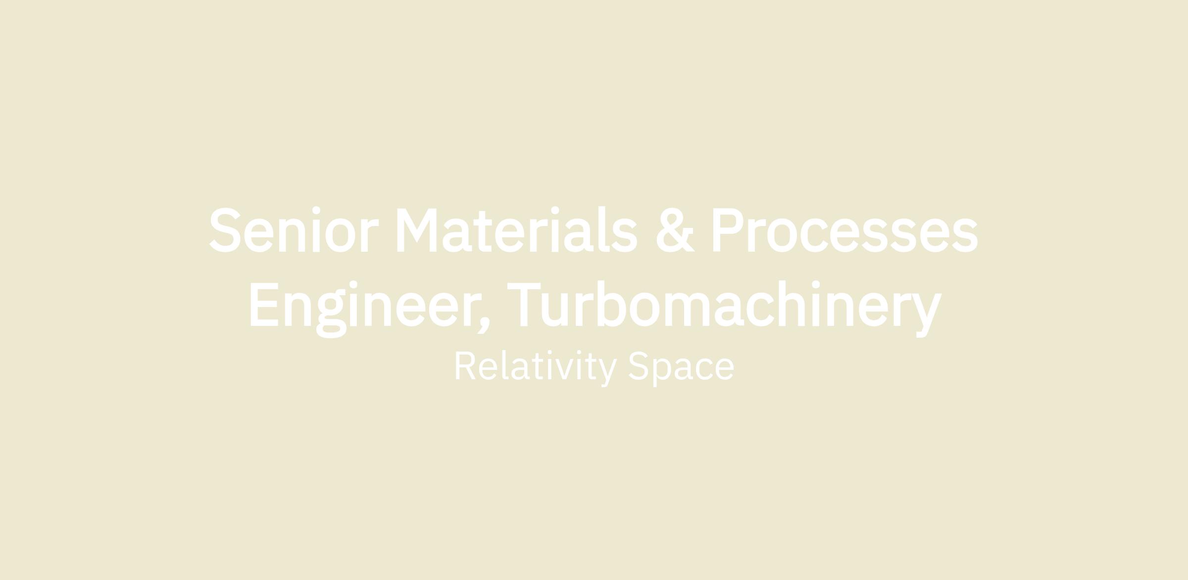 Senior Materials & Processes Engineer, Turbomachinery