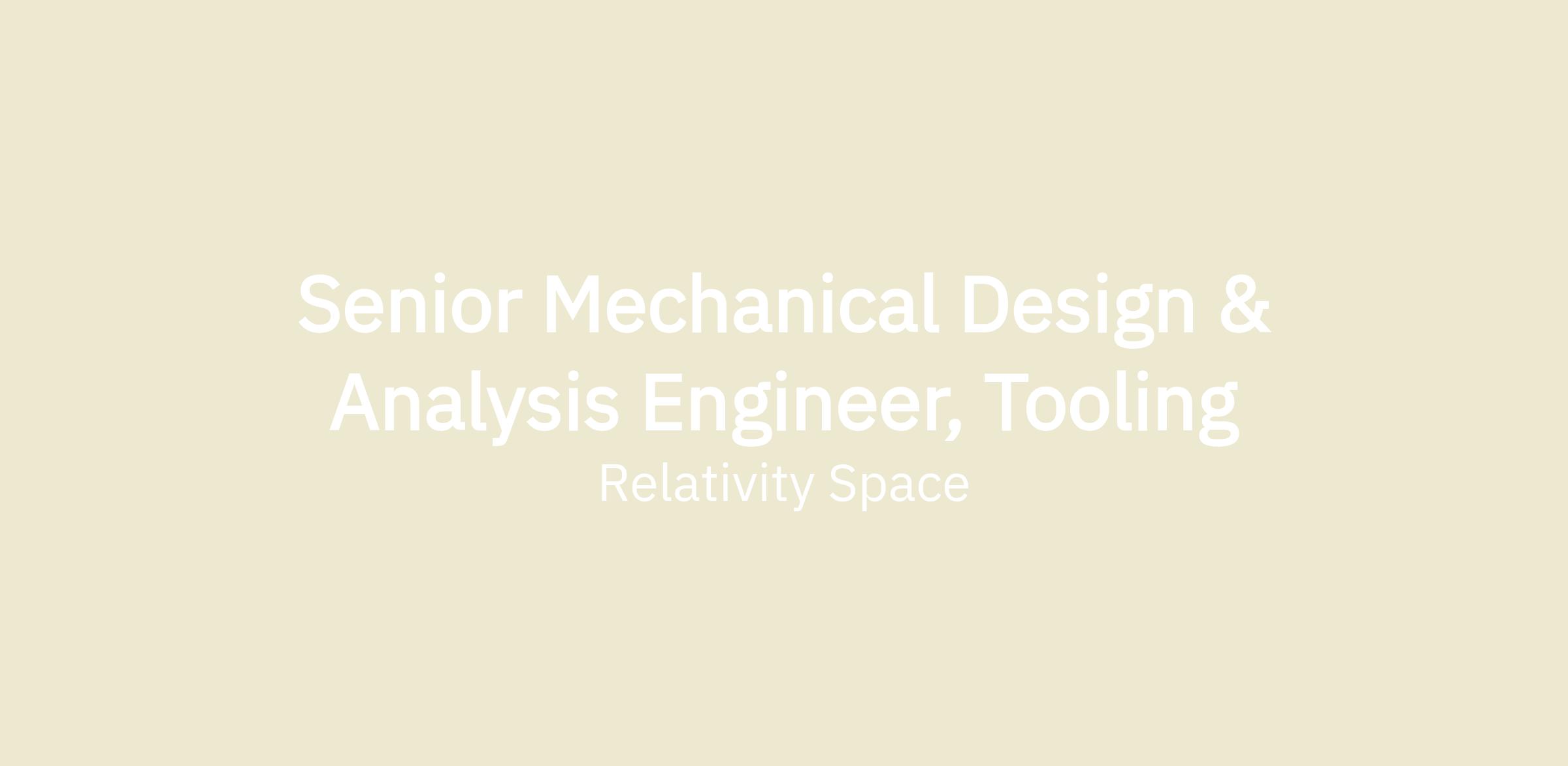 Senior Mechanical Design & Analysis Engineer, Tooling